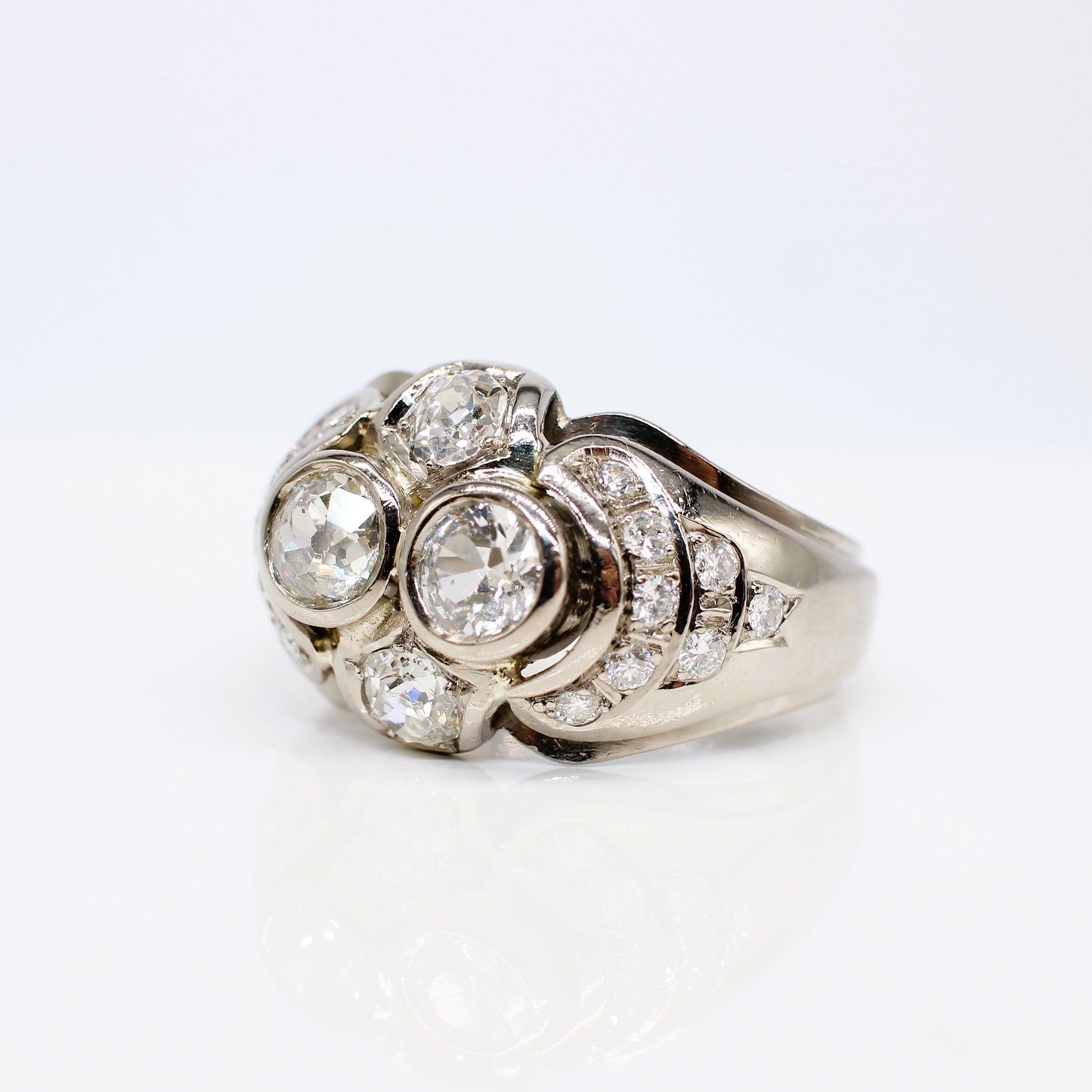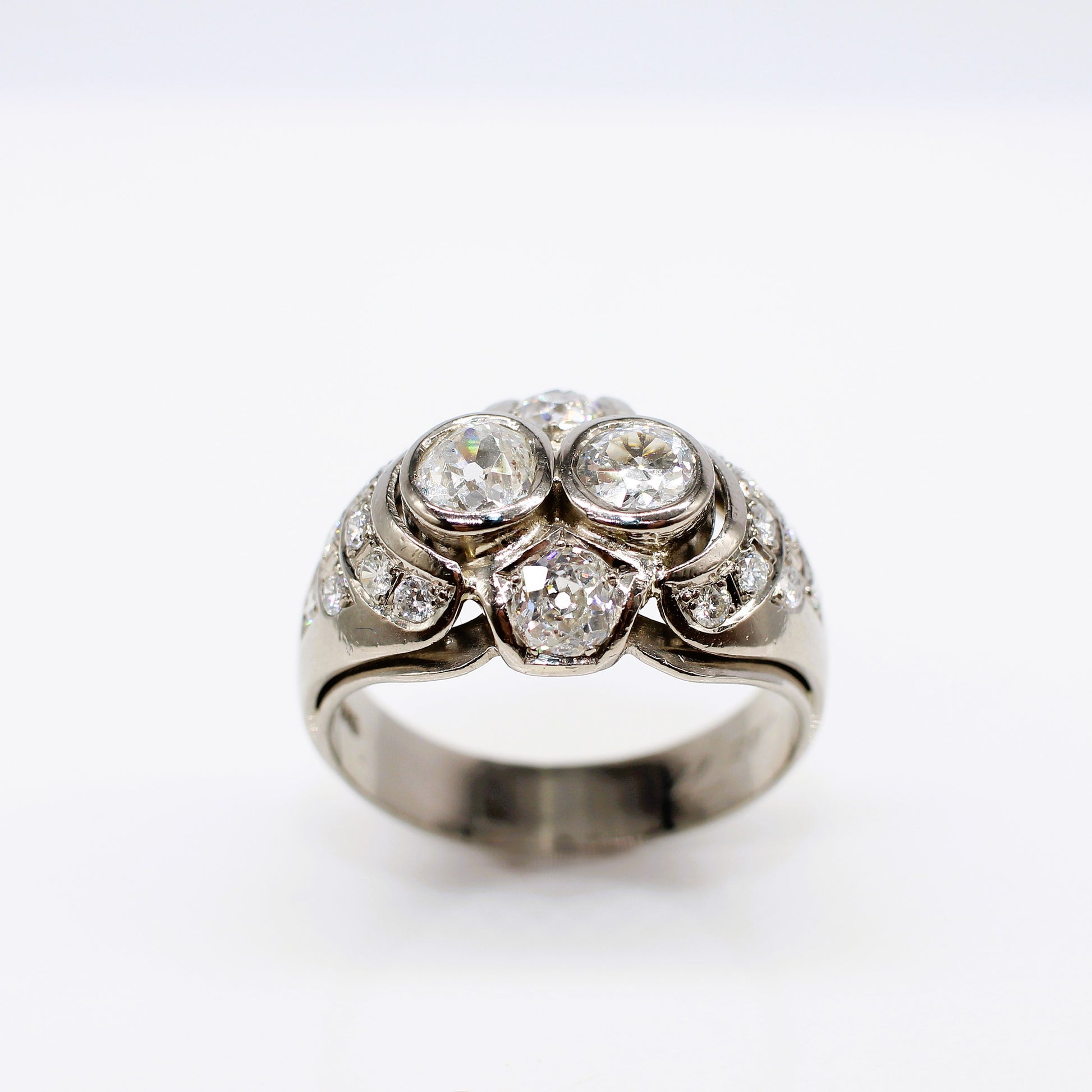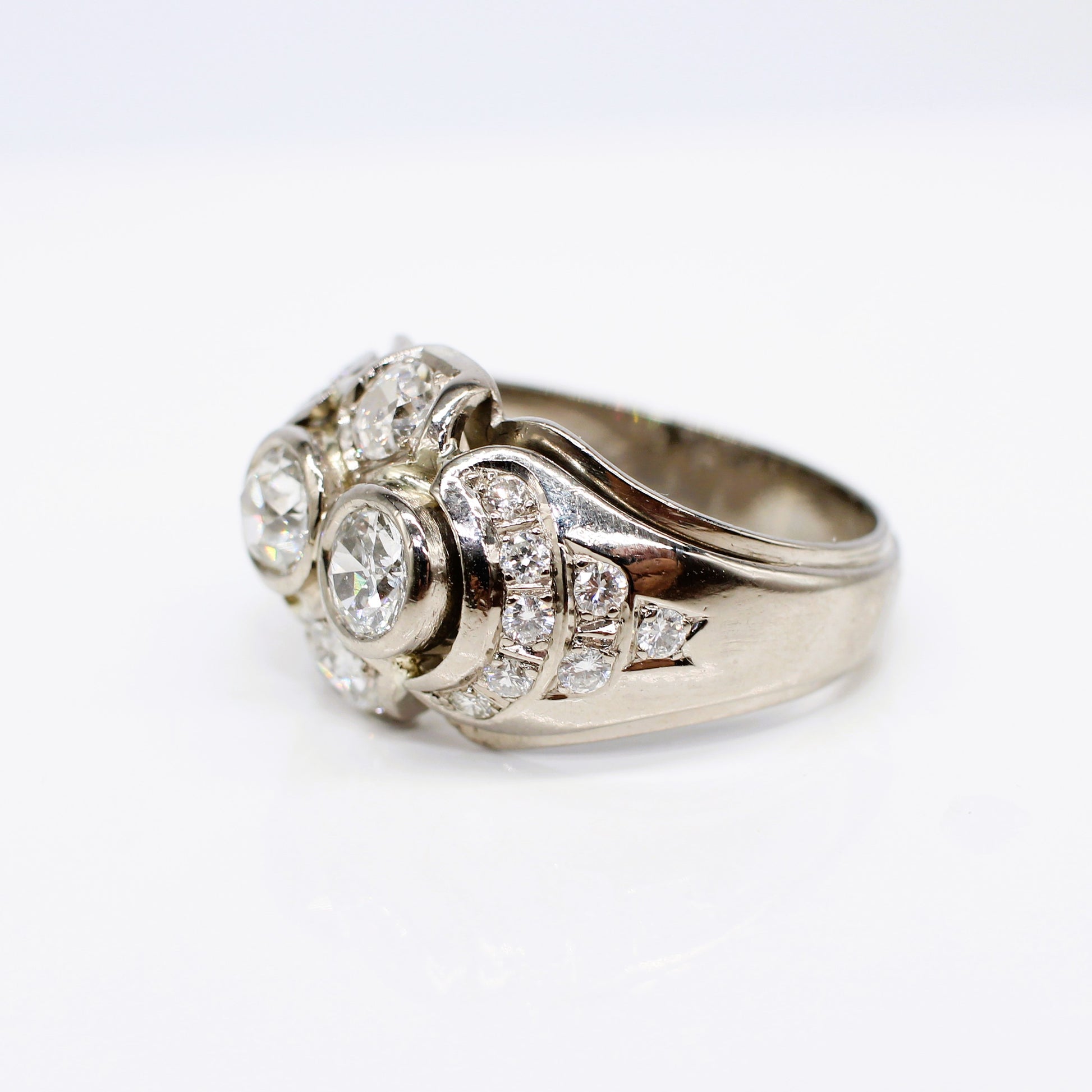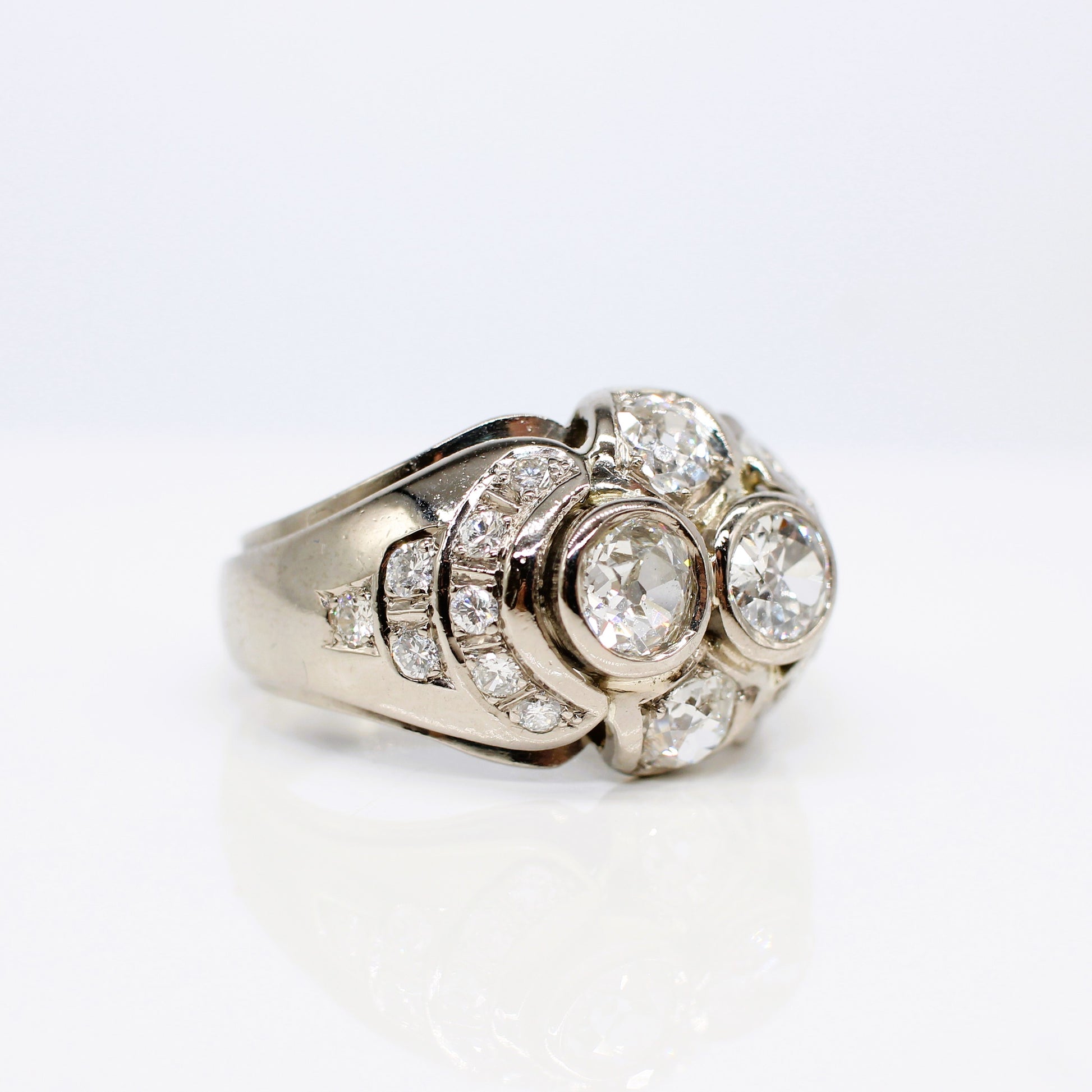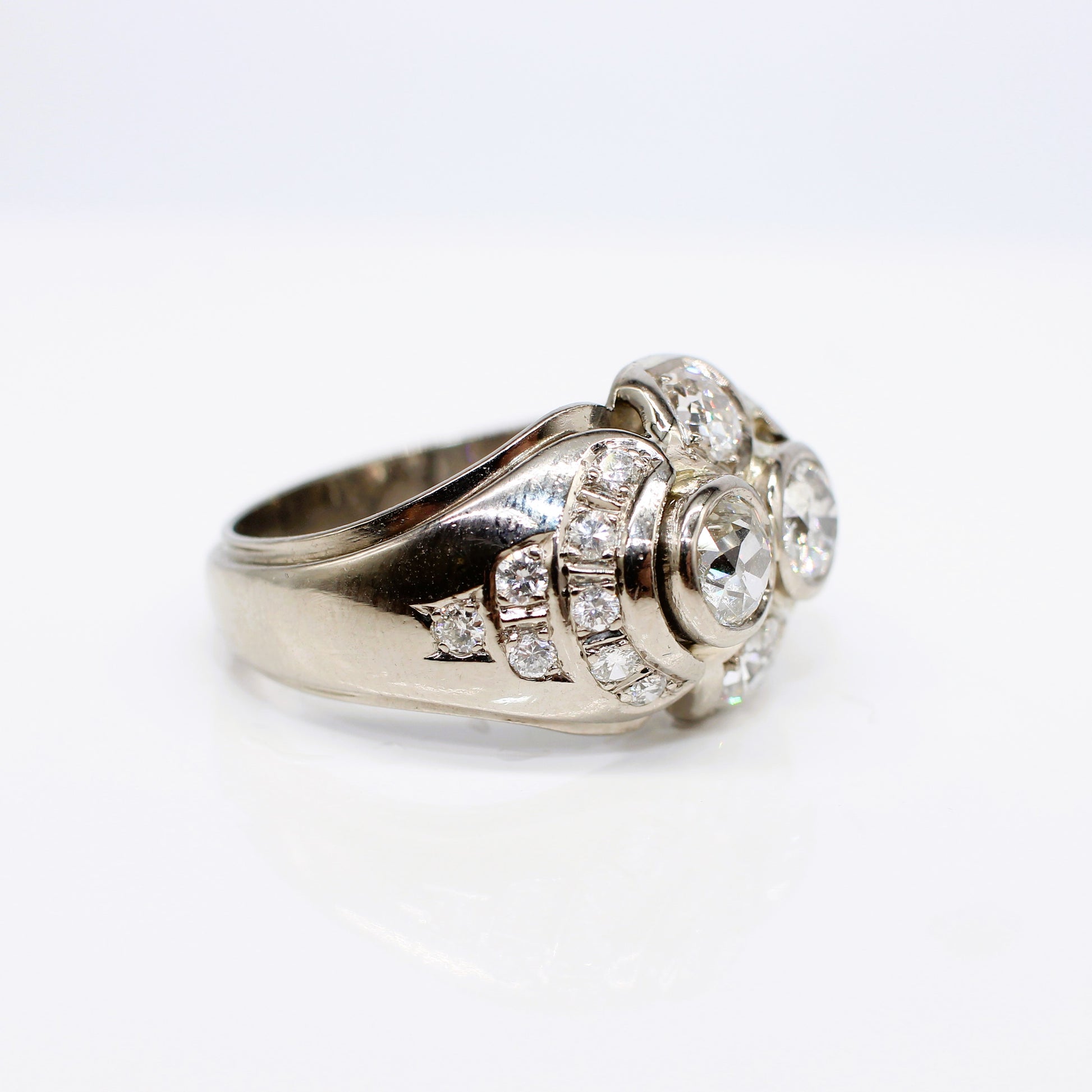 A Vintage, Heavy, Gentleman's Diamond Ring In 14ct White Gold With 20 Individual Mixed Cut Diamonds.