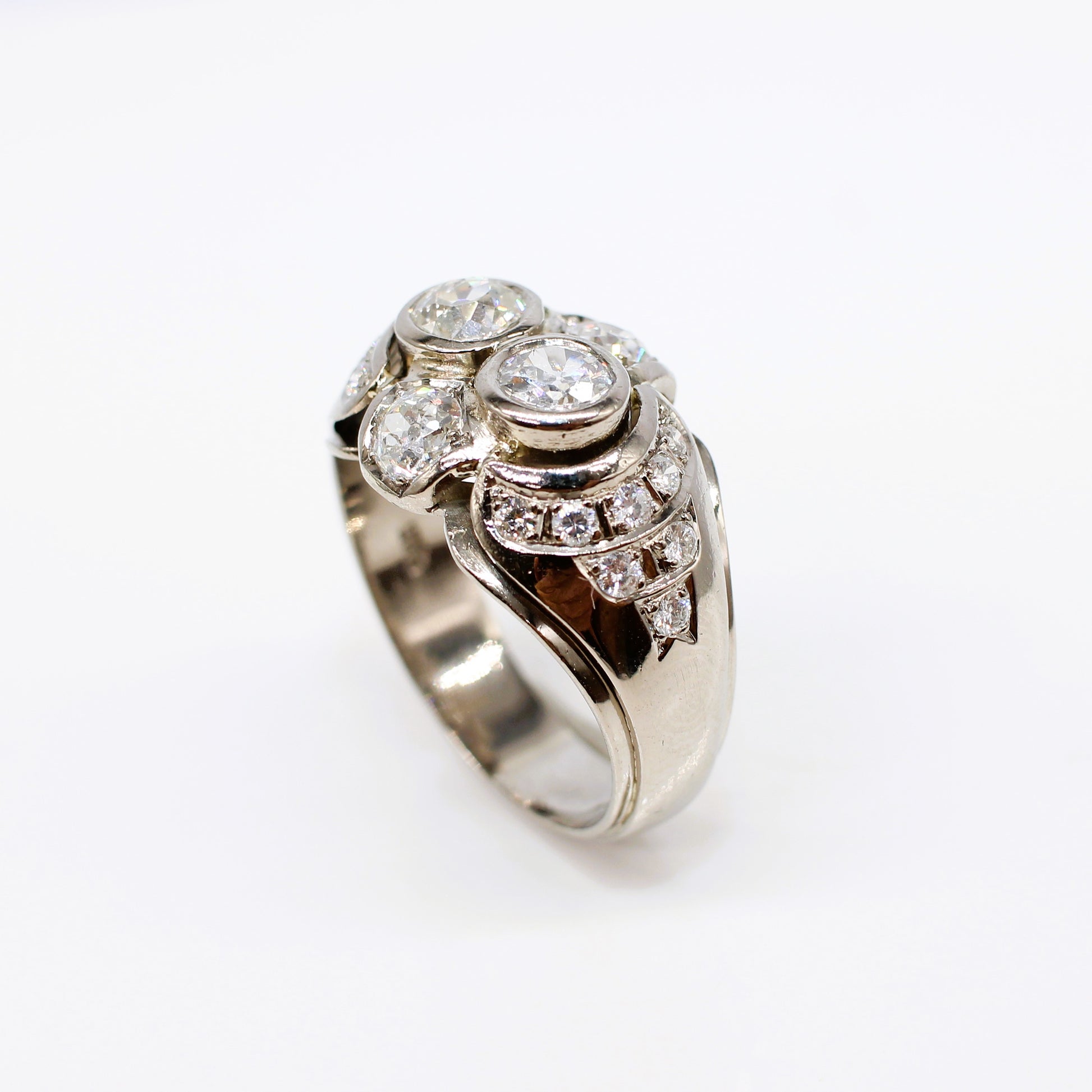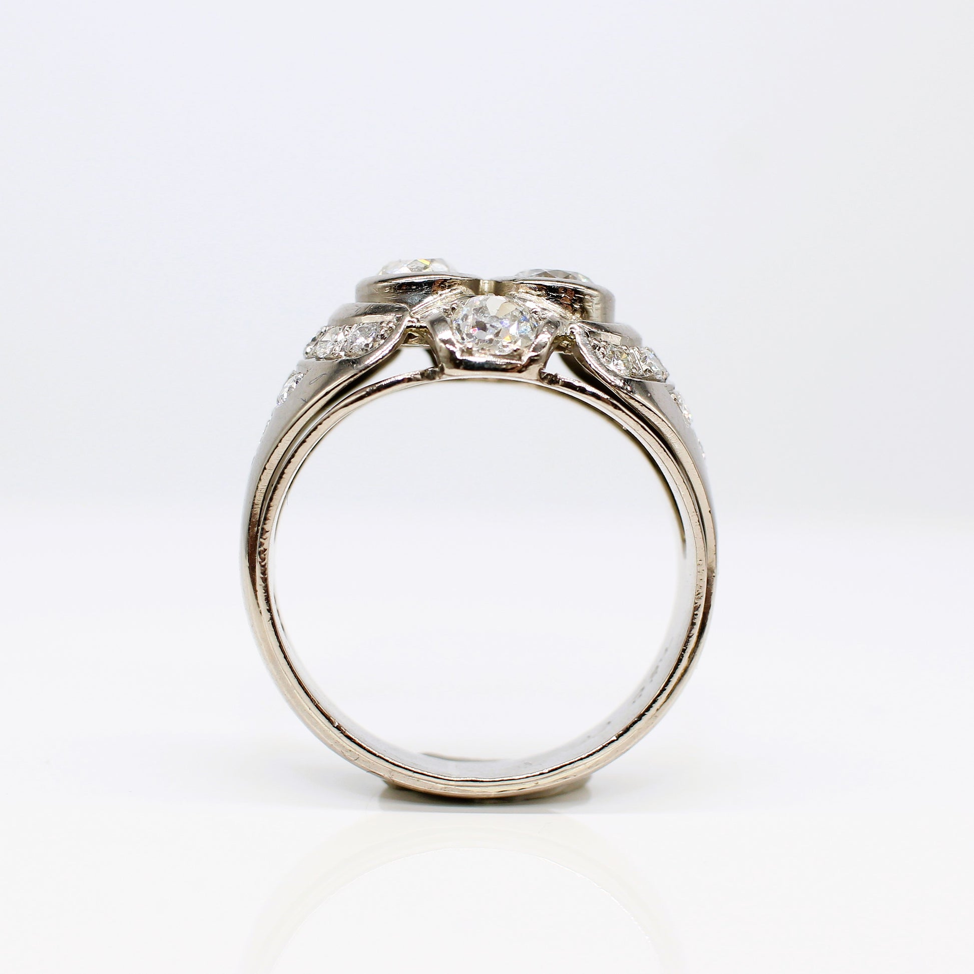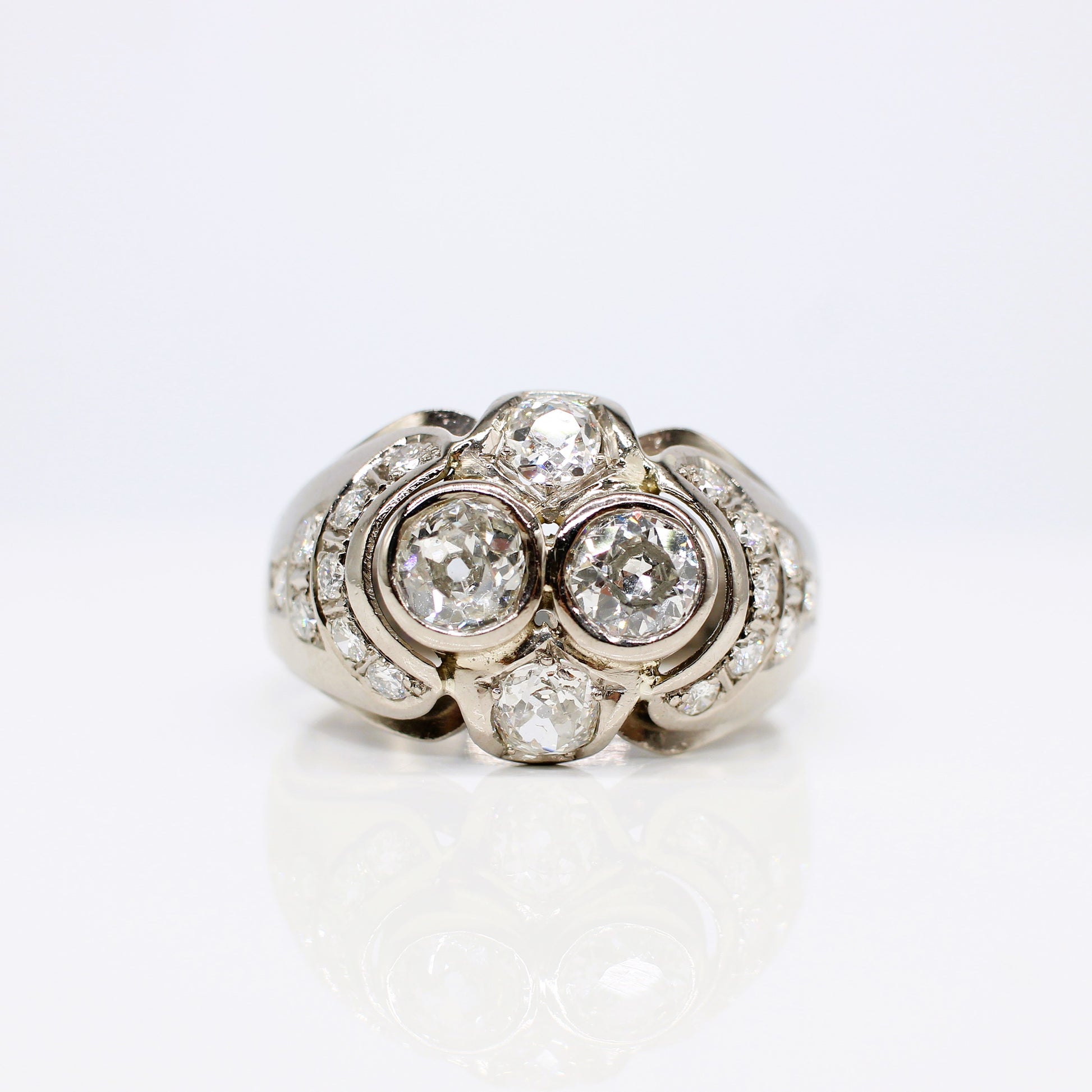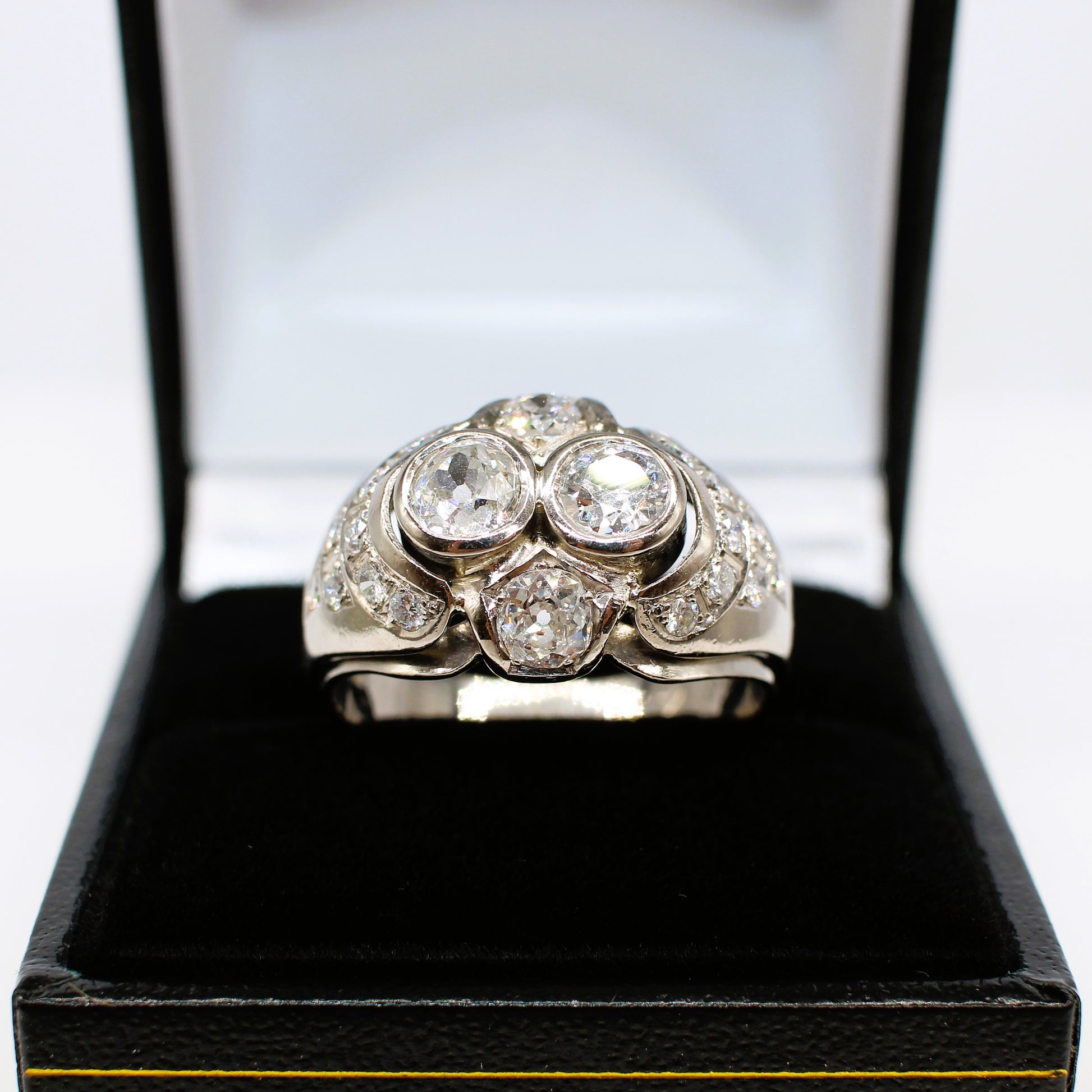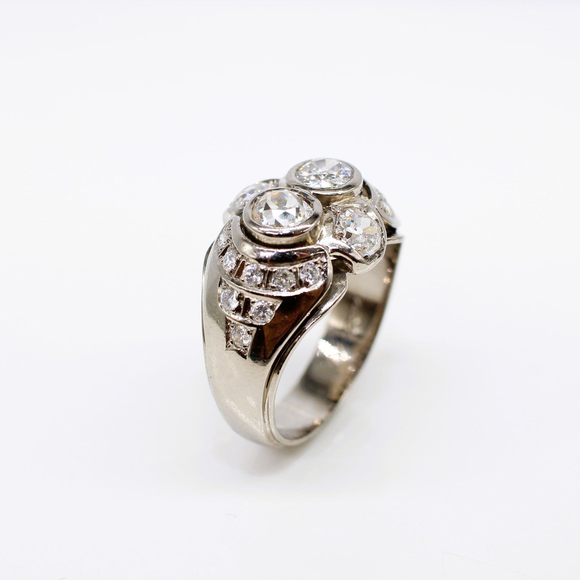 A Vintage, Heavy, Gentleman's Diamond Ring In 14ct White Gold With 20 Individual Mixed Cut Diamonds.