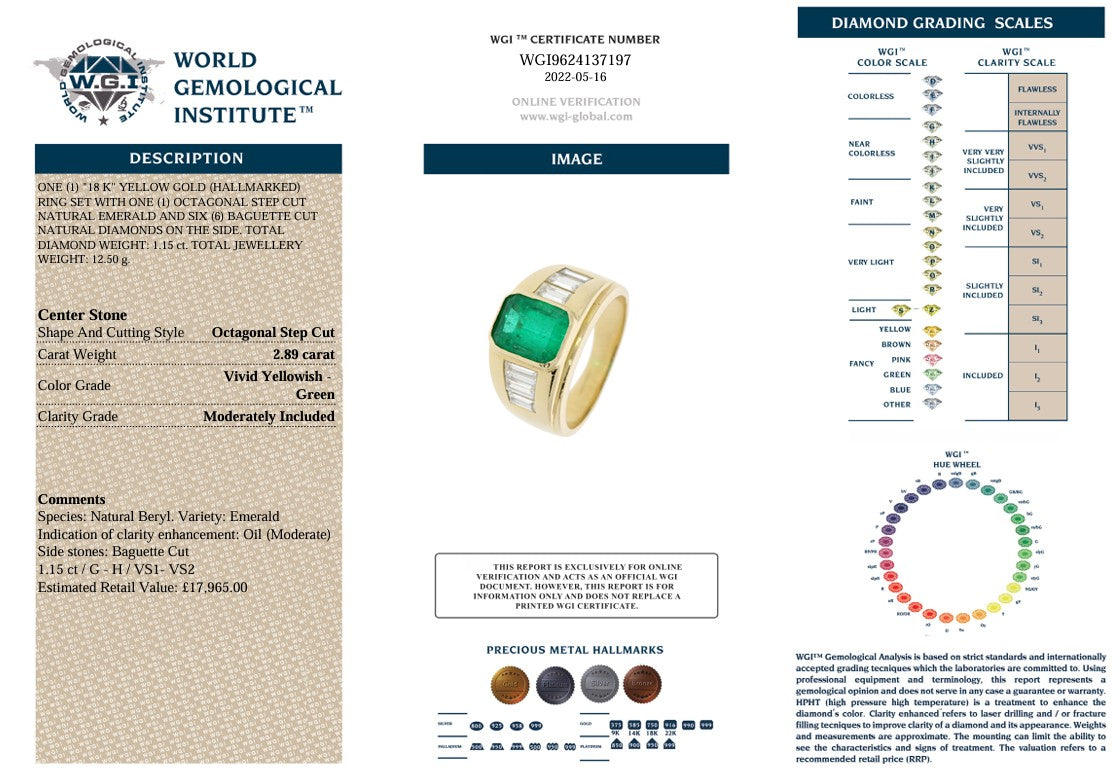 Comes With A WGI (World Gemological Institute) Certificate. To Check Online Please Visit www.wgi-global.com And Use The Online Verification Number: WGI9624137197