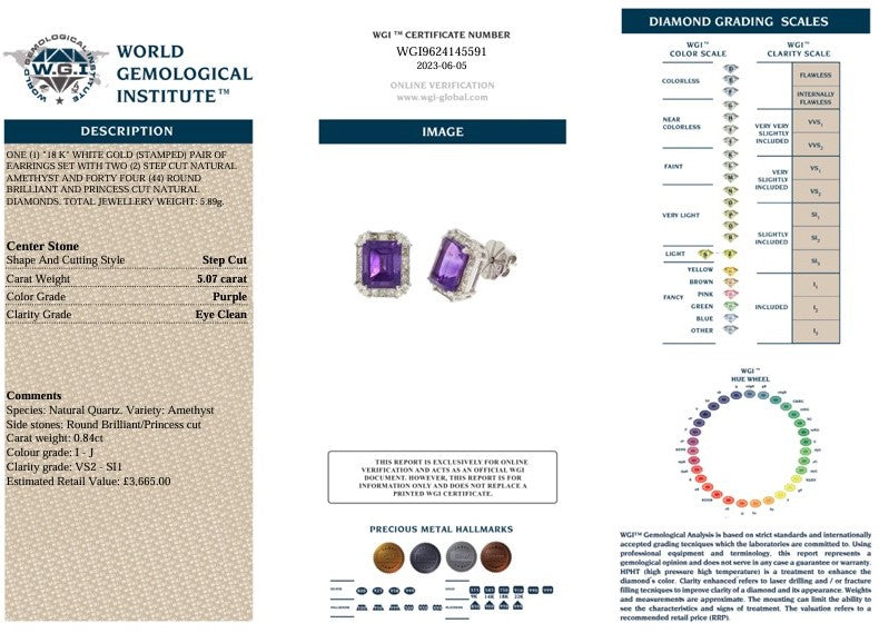 Comes With A WGI (World Gemological Institute) Certificate. To Check Online Please Visit www.wgi-global.com And Use The Online Verification Number: WGI9624145591