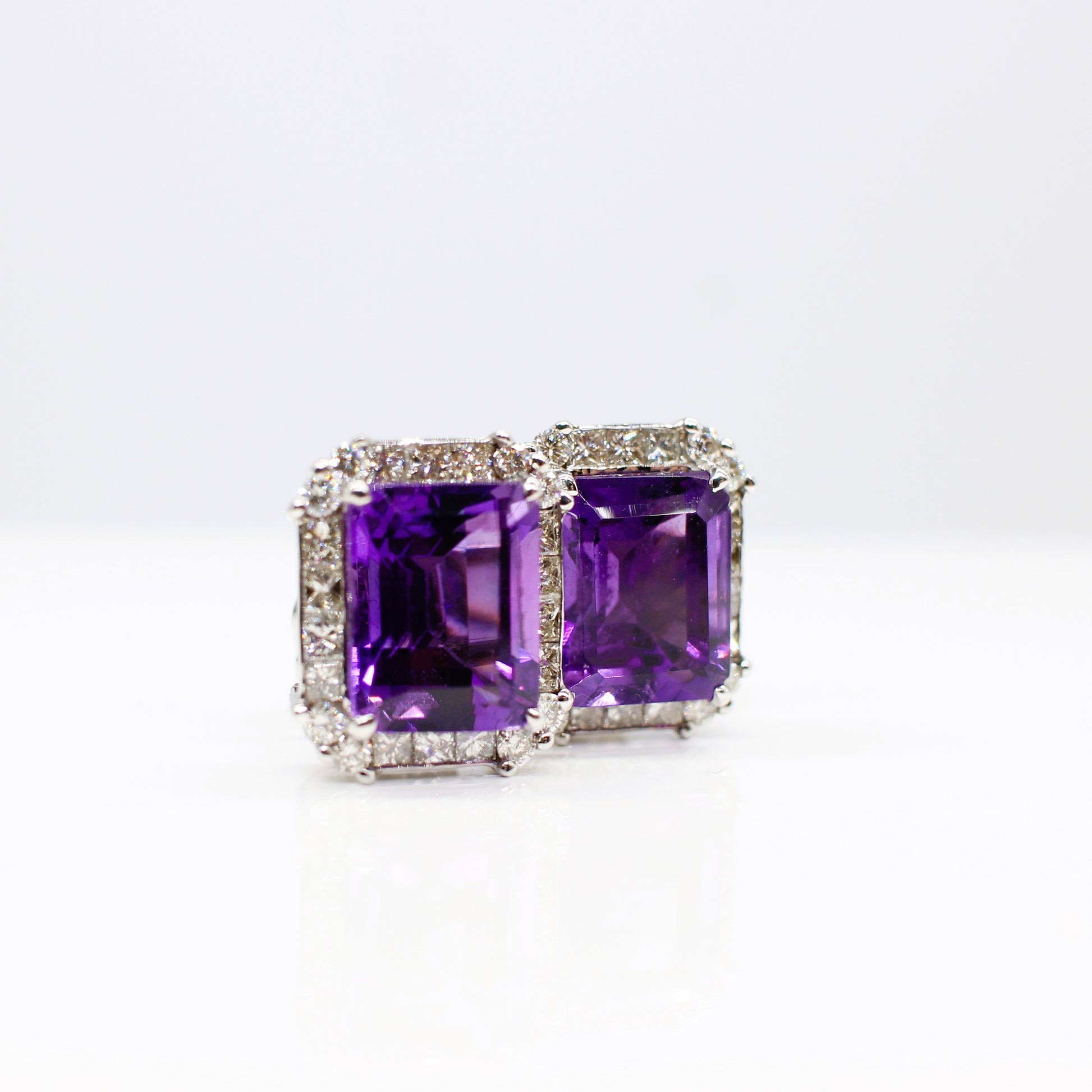 18K AMETHYST & DIAMOND HALO EAR STUDS