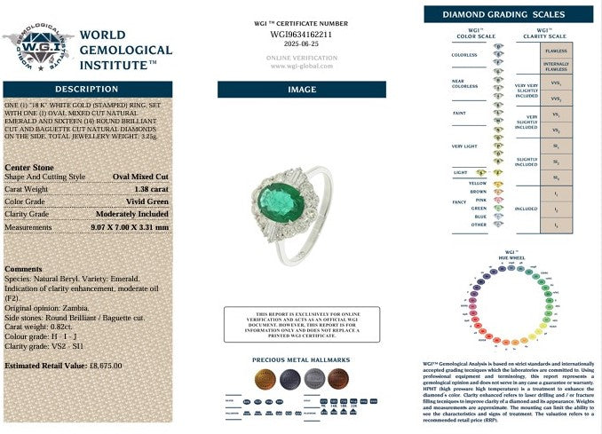 Comes With A WGI (World Gemological Institute) Certificate. To Check Online Please Visit www.wgi-global.com And Use The Online Verification Number: WGI9634162211