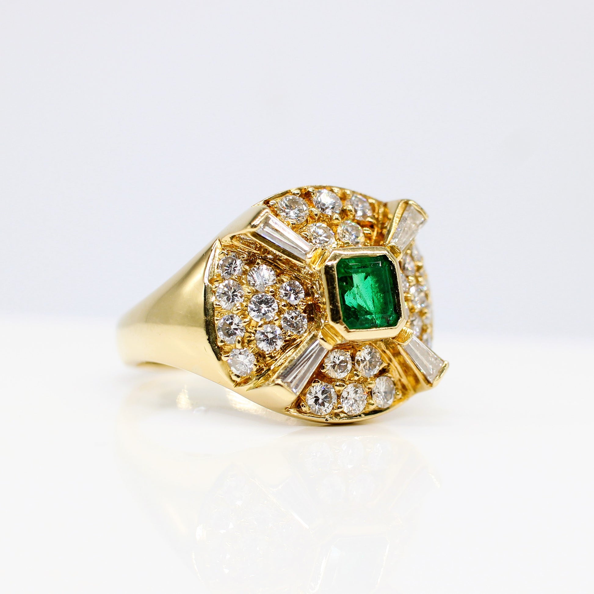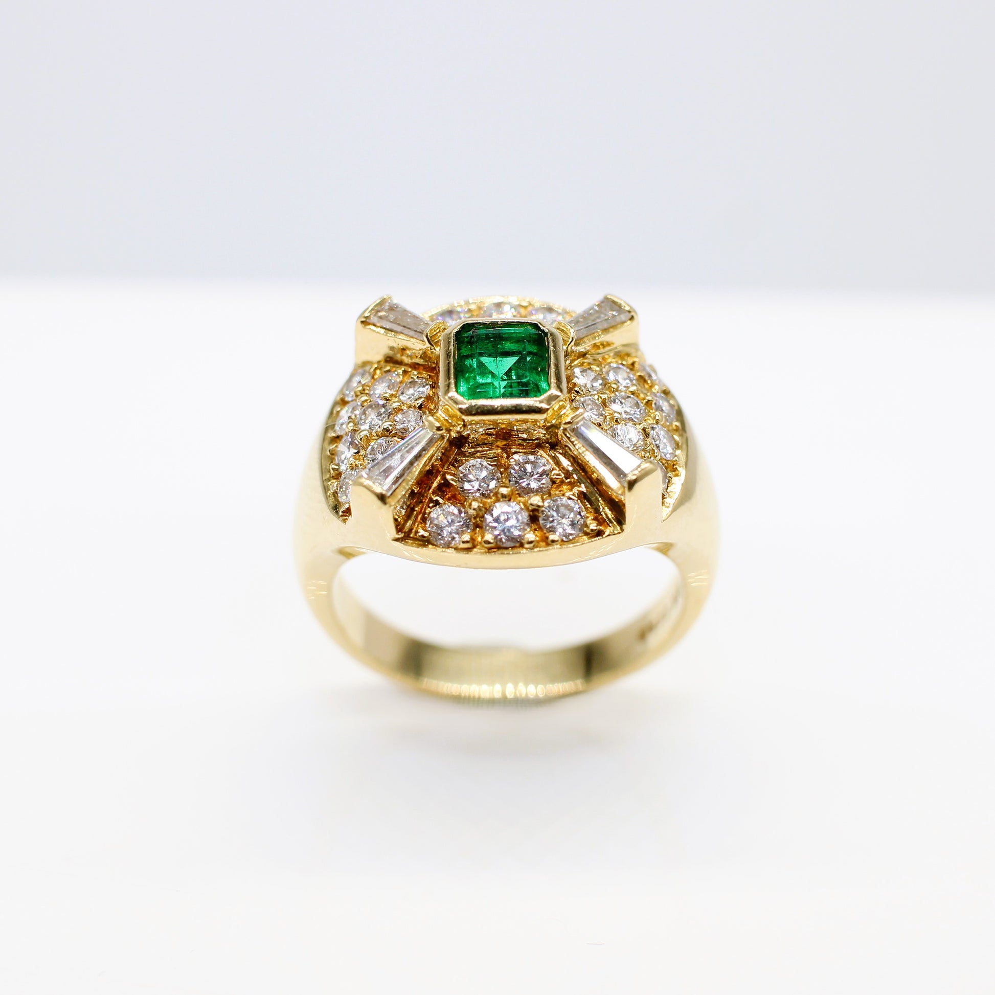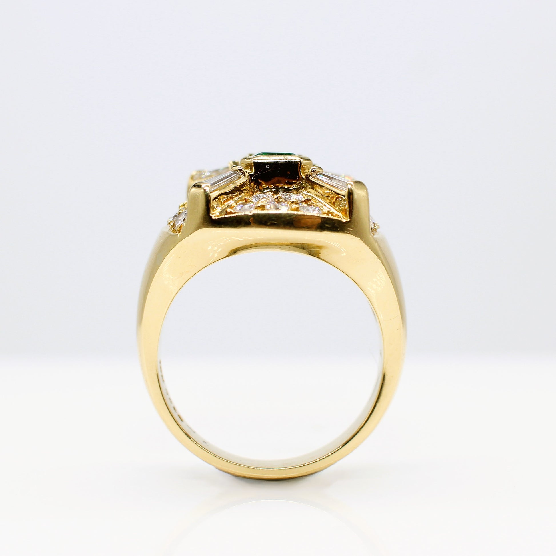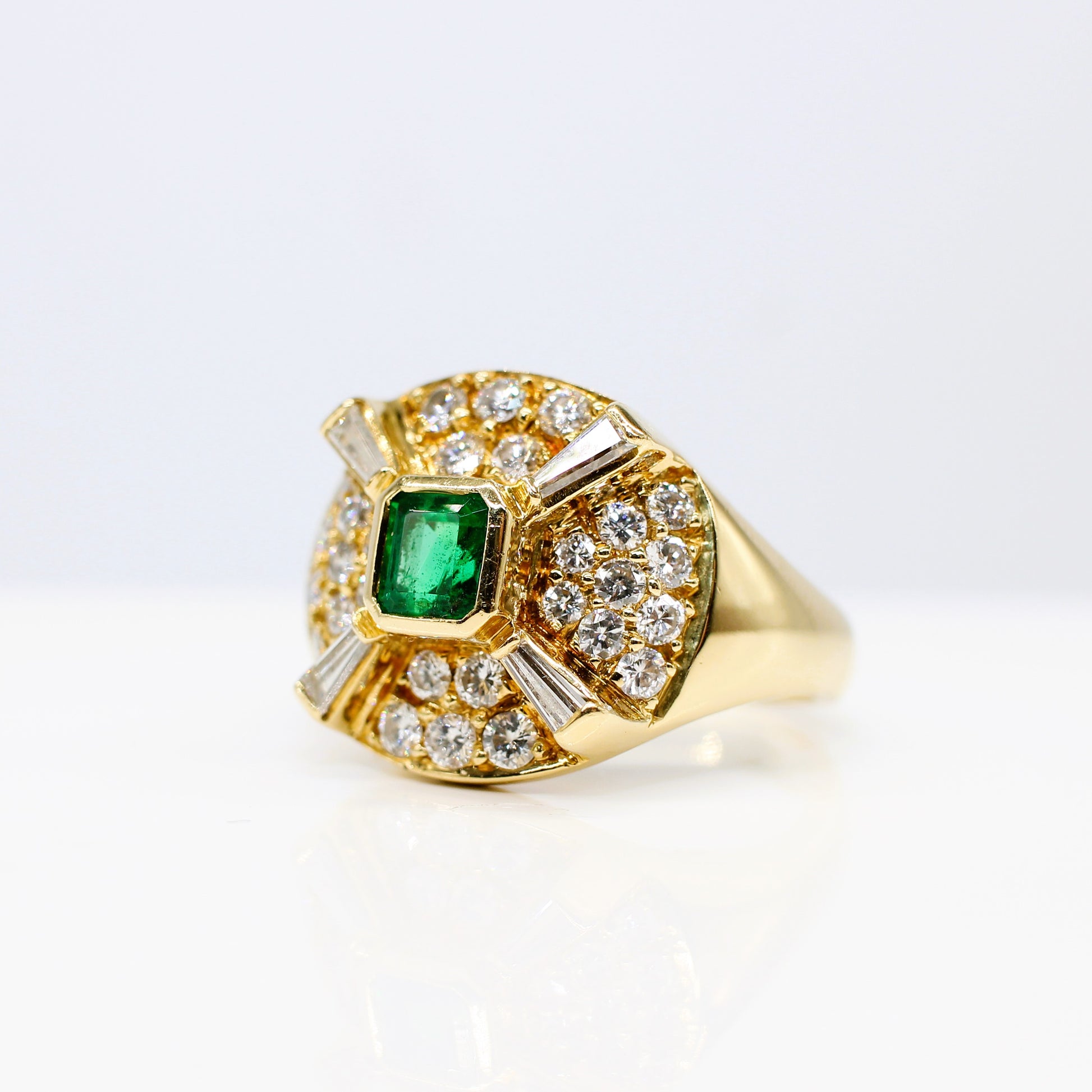 An Emerald And Diamond Ring In 18K Yellow Gold.