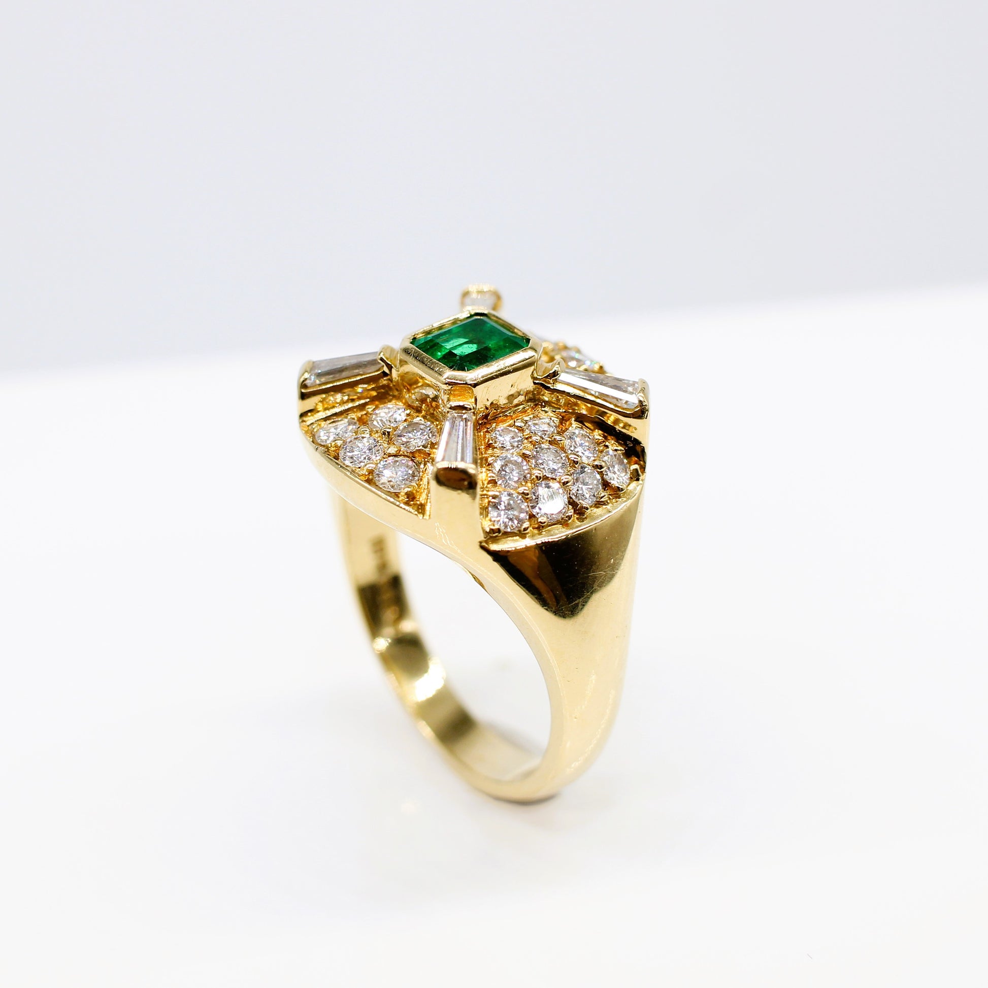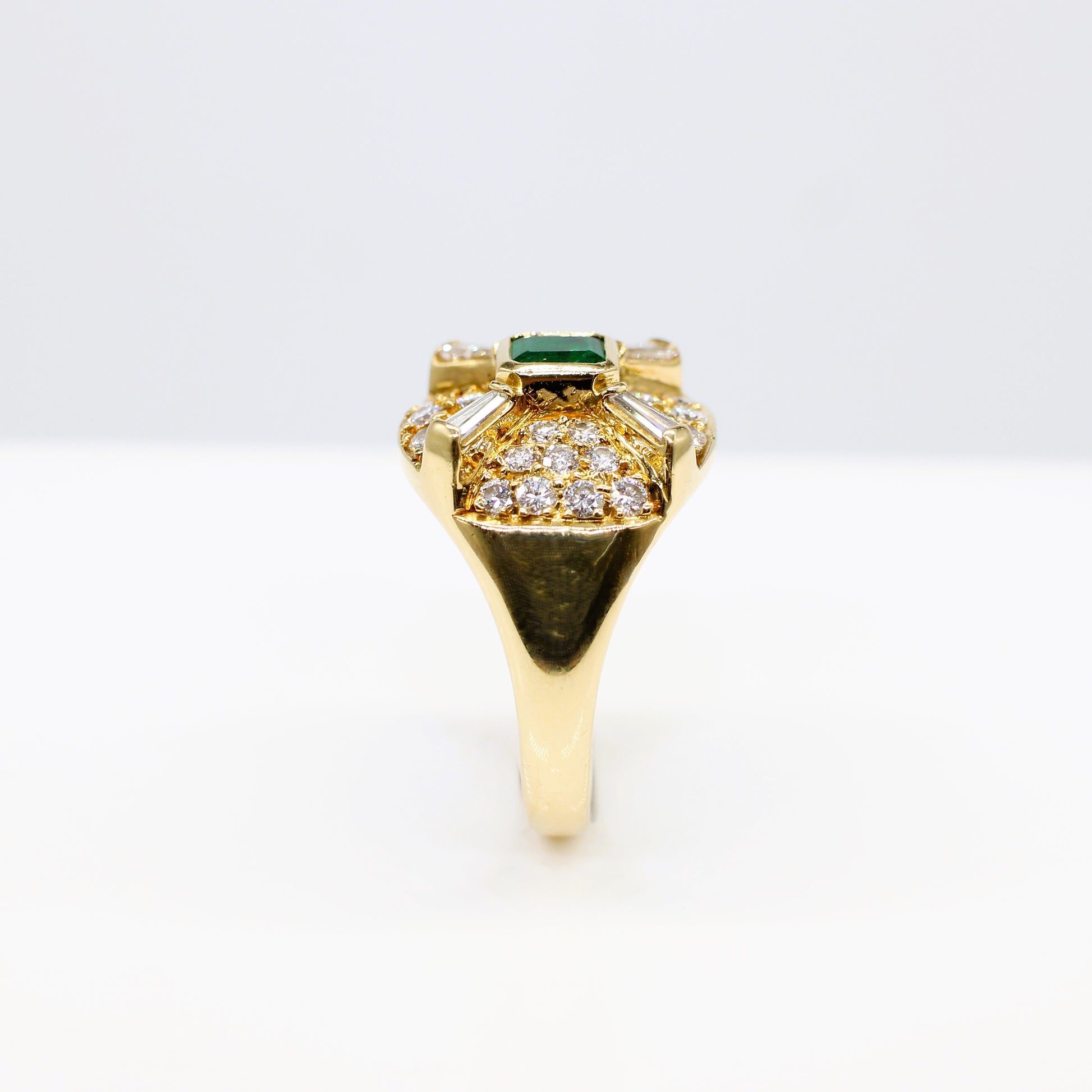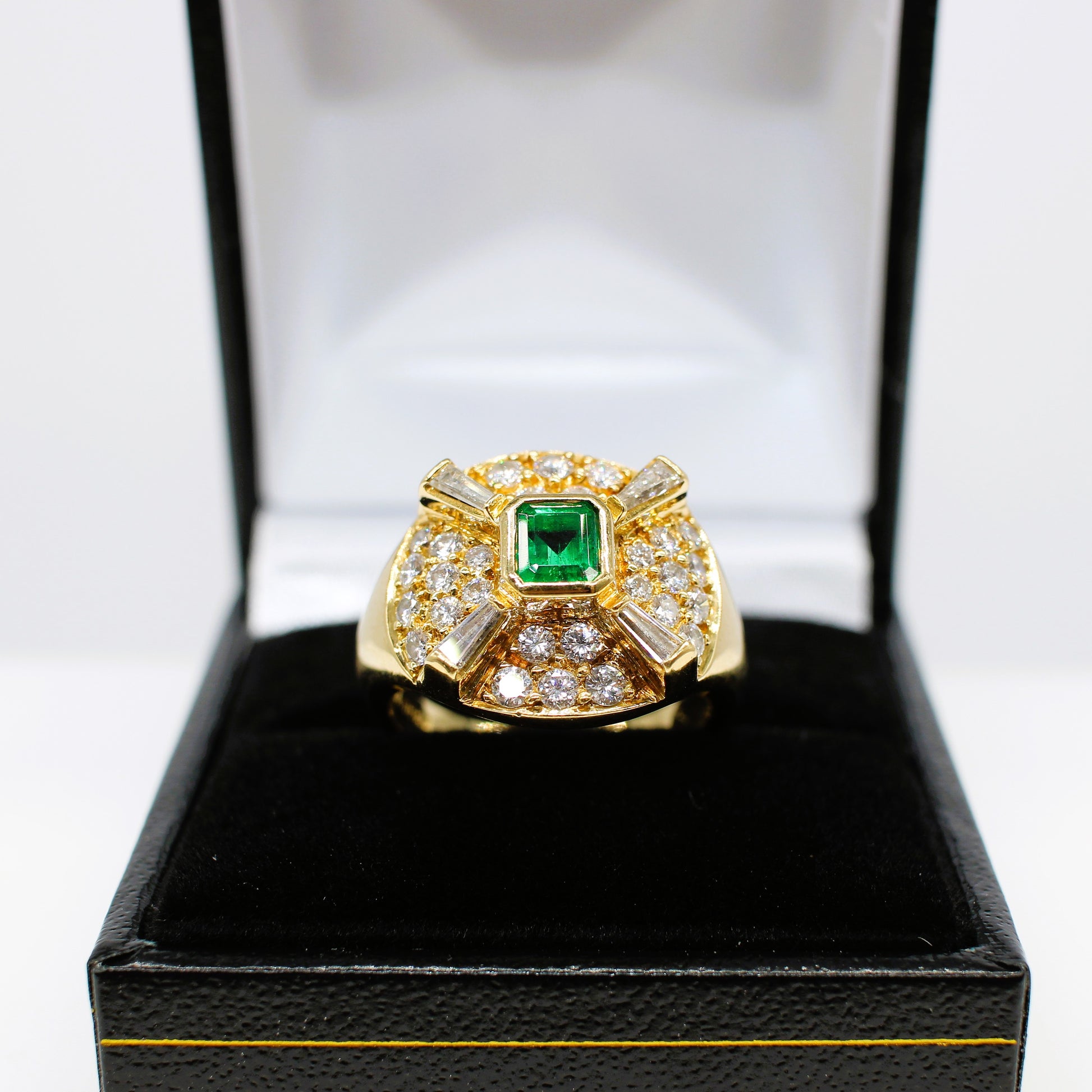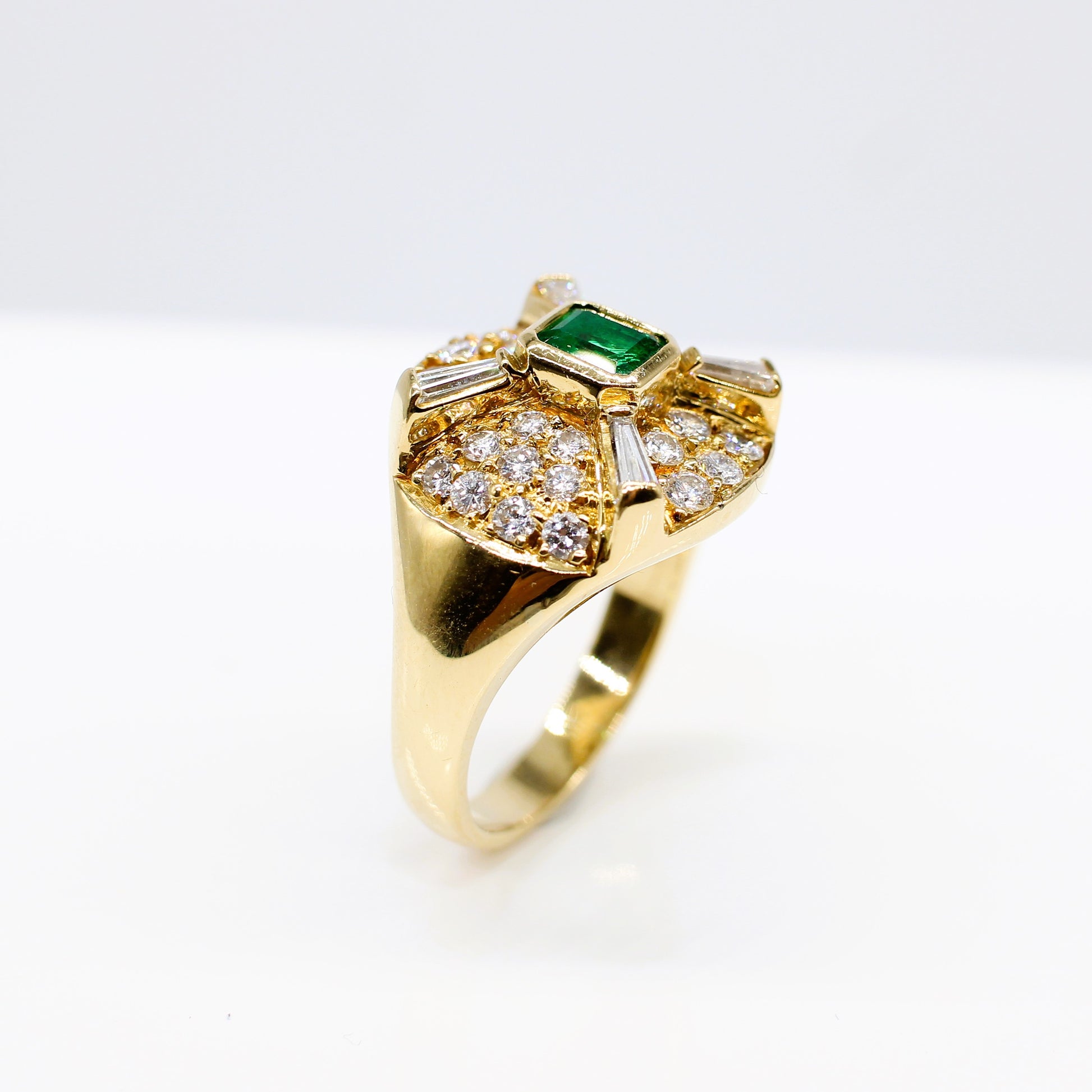 An Emerald And Diamond Ring In 18K Yellow Gold.