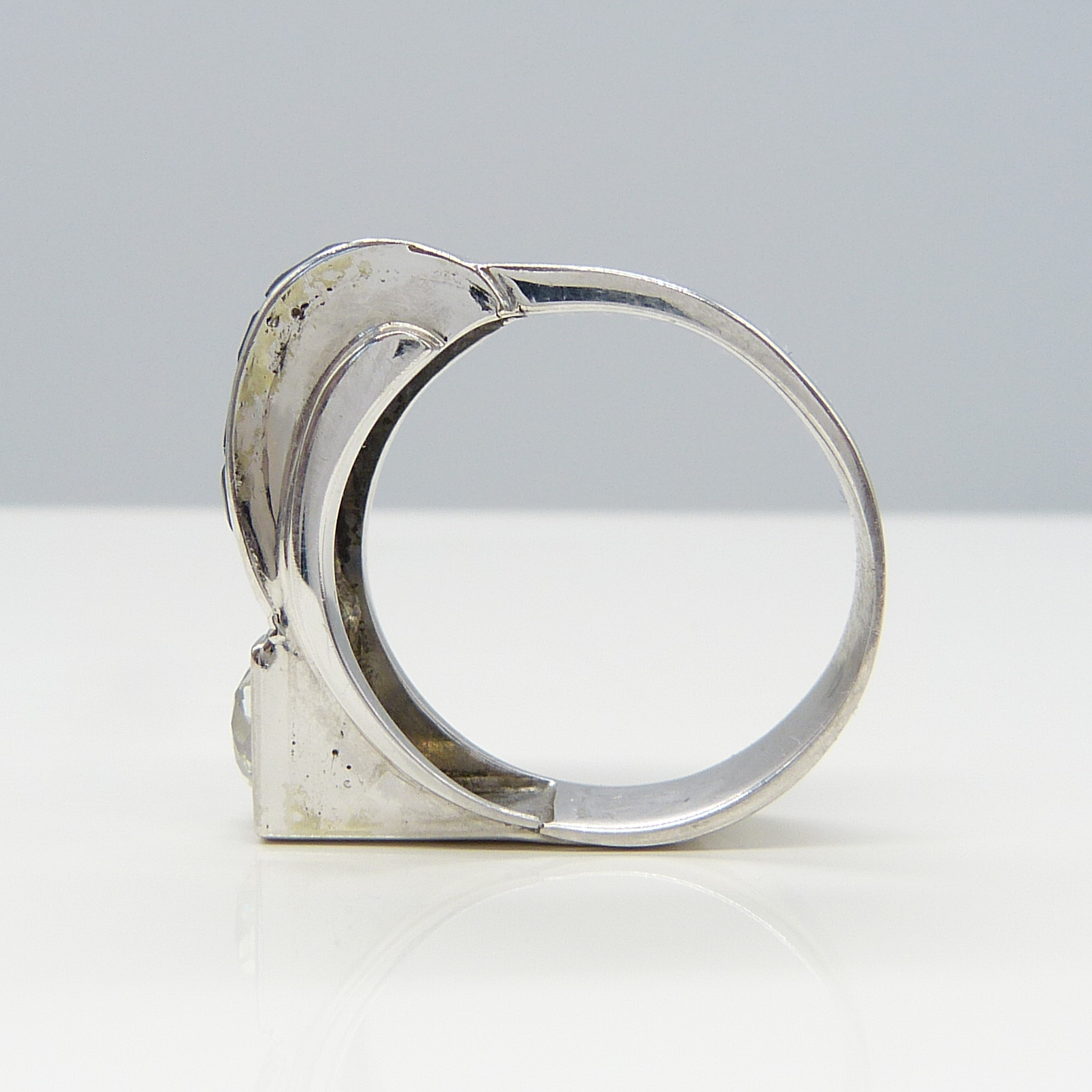 This ring is tested as 18K white gold.