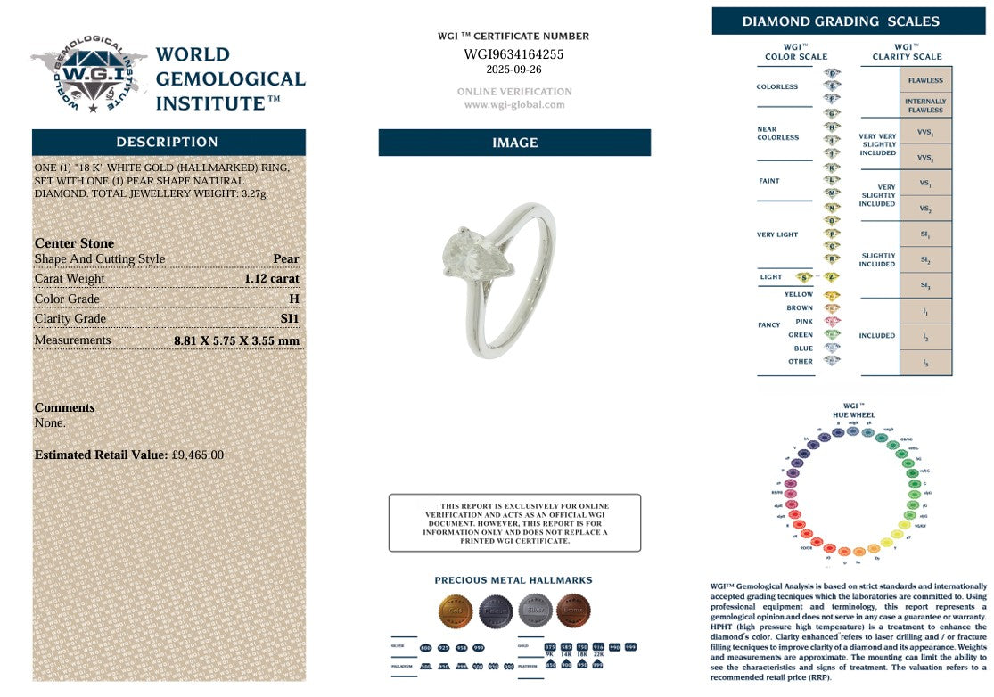 Comes With A WGI (World Gemological Institute) Certificate. To Check Online Please Visit www.wgi-global.com And Use The Online Verification Number: WGI9634164255