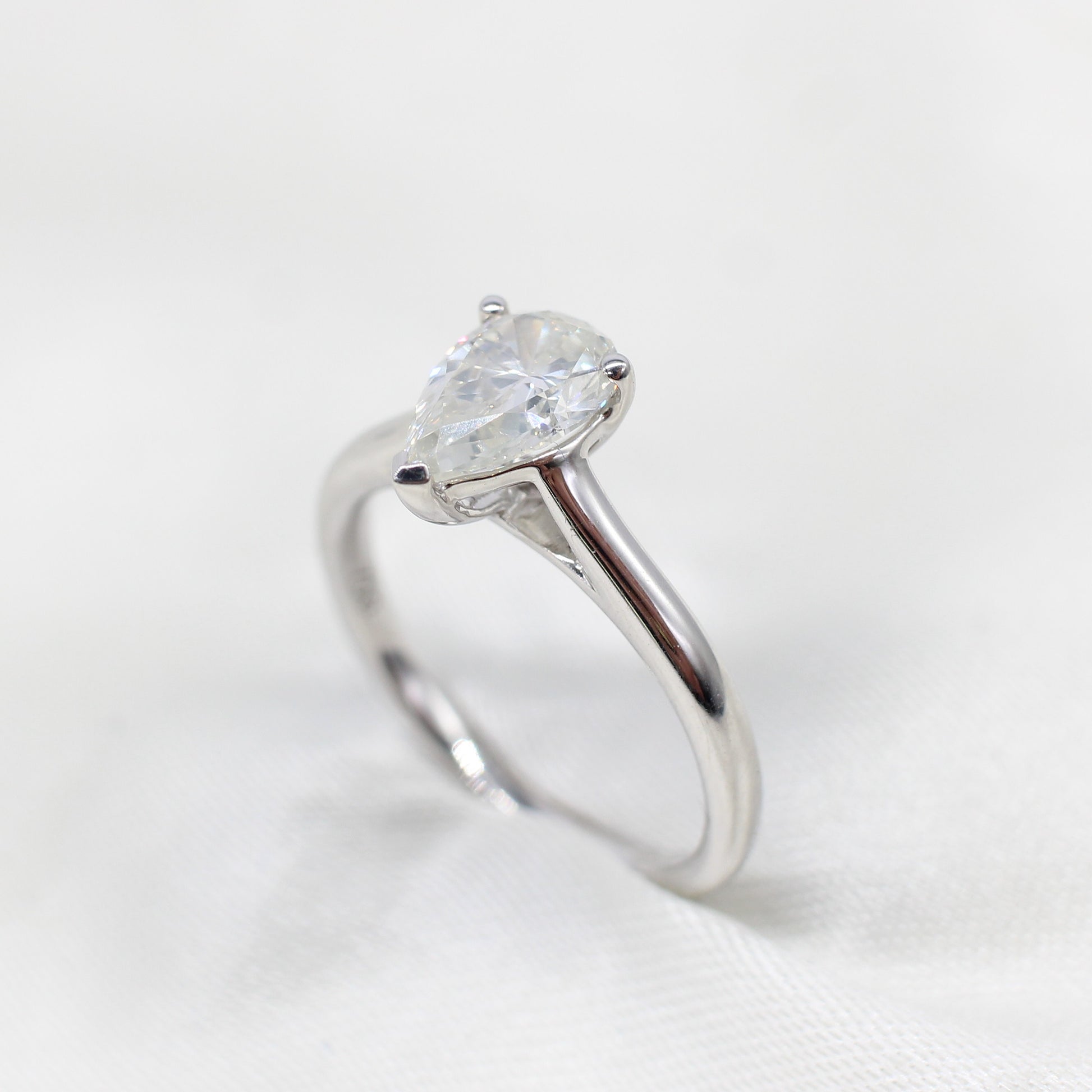 18K PEAR SHAPED DIAMOND SOLITAIRE RING