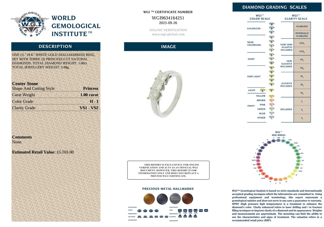 Comes With A WGI (World Gemological Institute) Certificate. To Check Online Please Visit www.wgi-global.com And Use The Online Verification Number: WGI9634164251