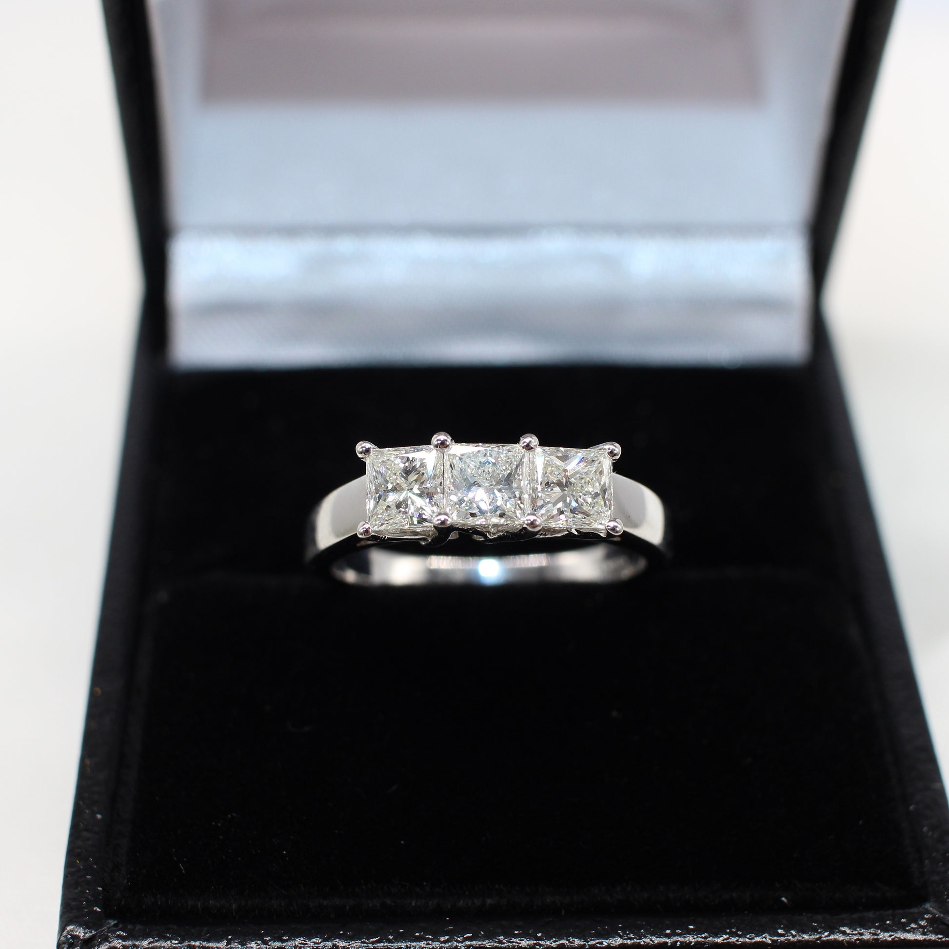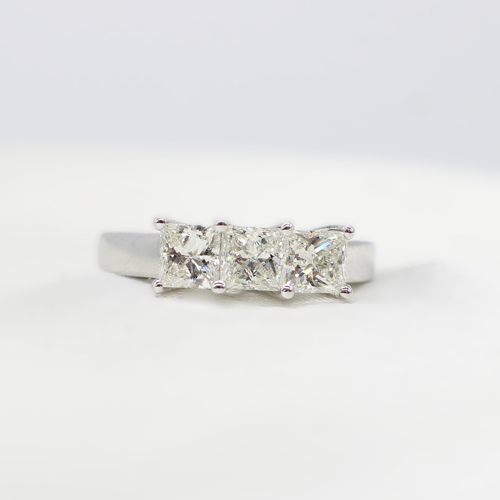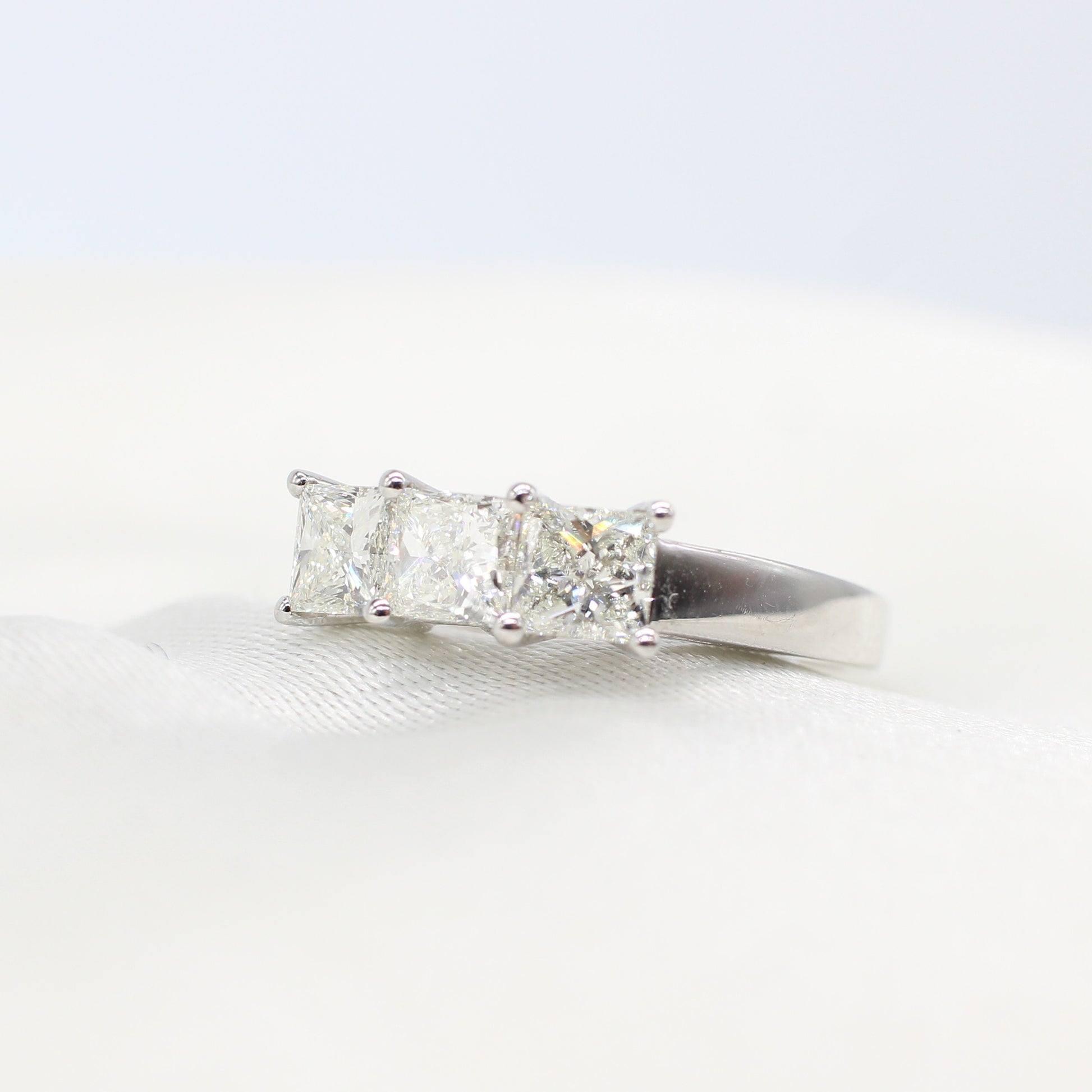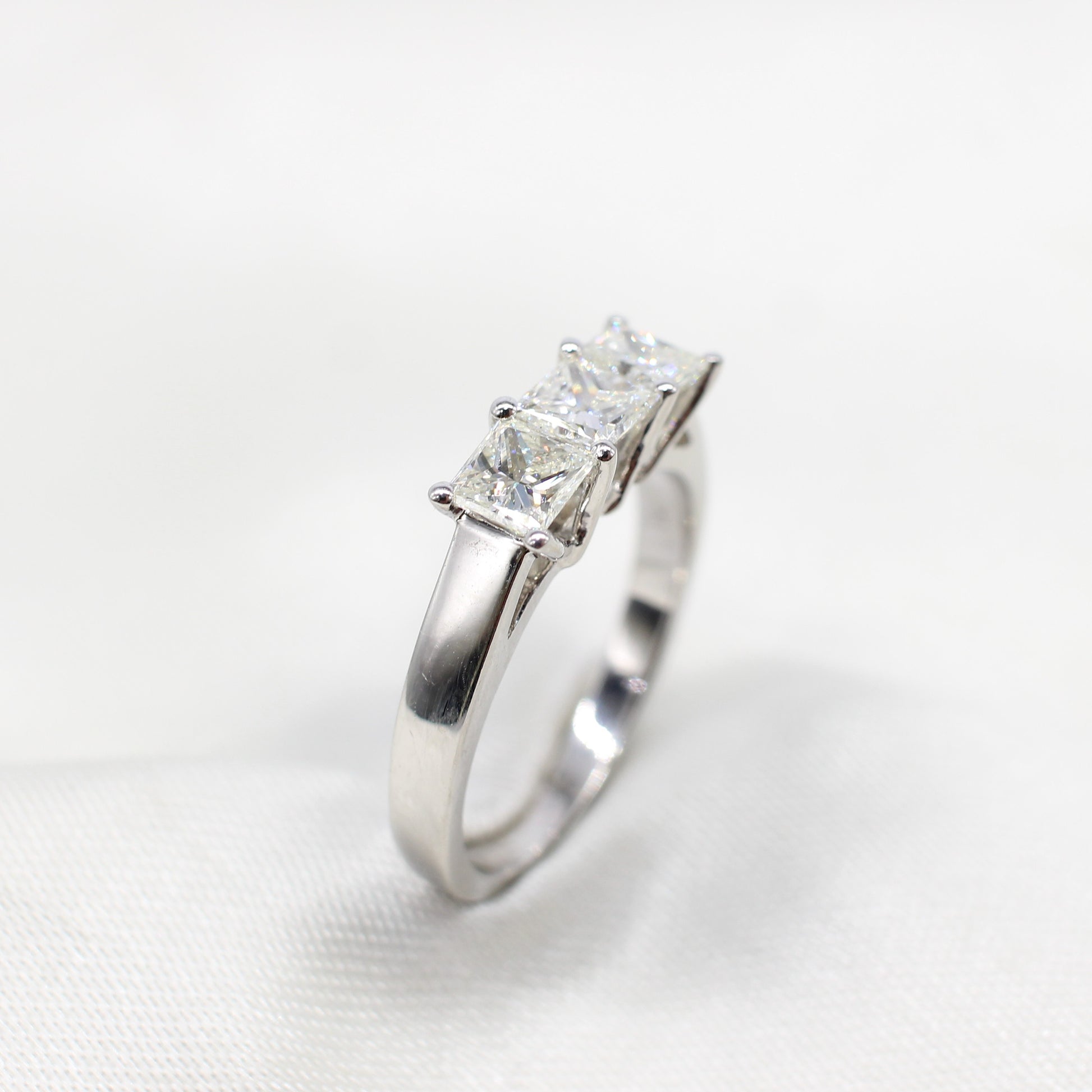 18K PRINCESS CUT DIAMOND TRILOGY RING