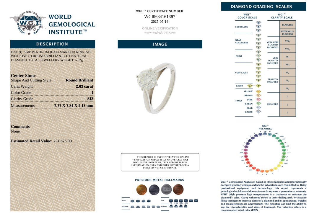 Comes With A WGI (World Gemological Institute) Certificate. To Check Online Please Visit www.wgi-global.com And Use The Online Verification Number: WGI9634161397