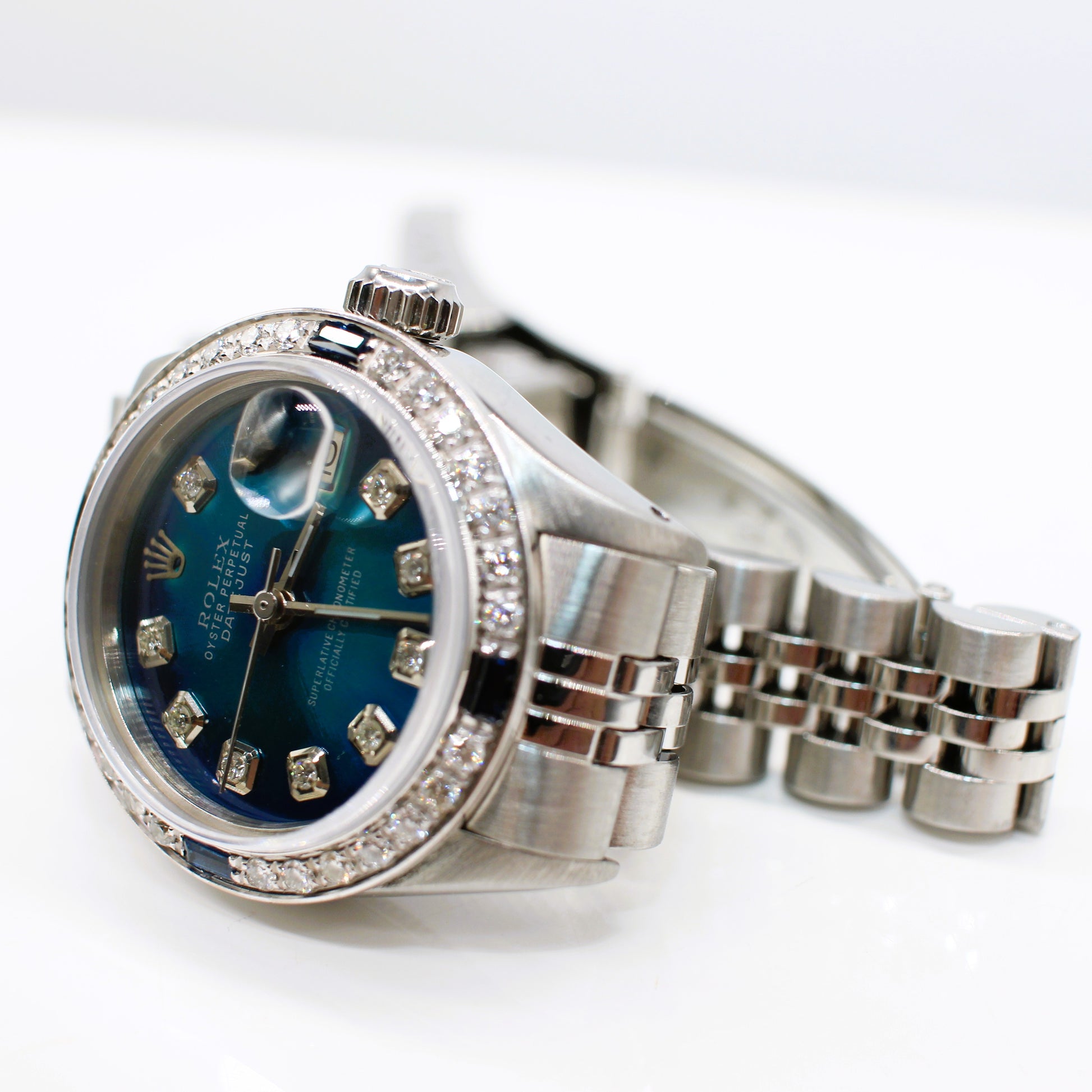 A Ladies Rolex Oyster Perpetual Date Just - Blue Mother Of Pearl After Market Custom Dial With Diamond Hour Dots