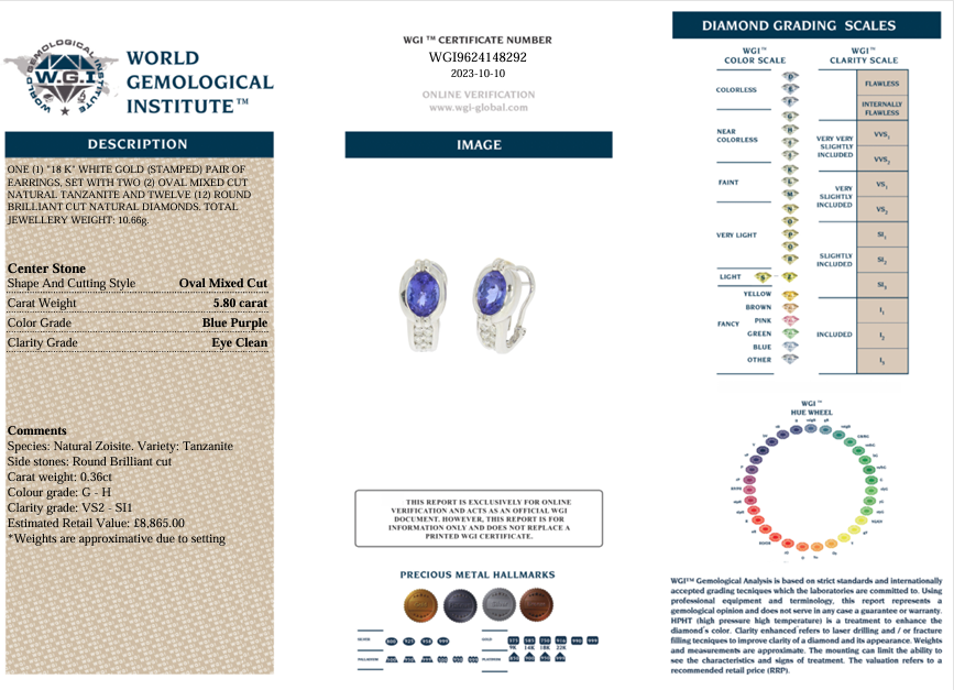 Comes With A WGI (World Gemological Institute) Certificate. To Check Online Please Visit www.wgi-global.com And Use The Online Verification Number: WGI9624148292