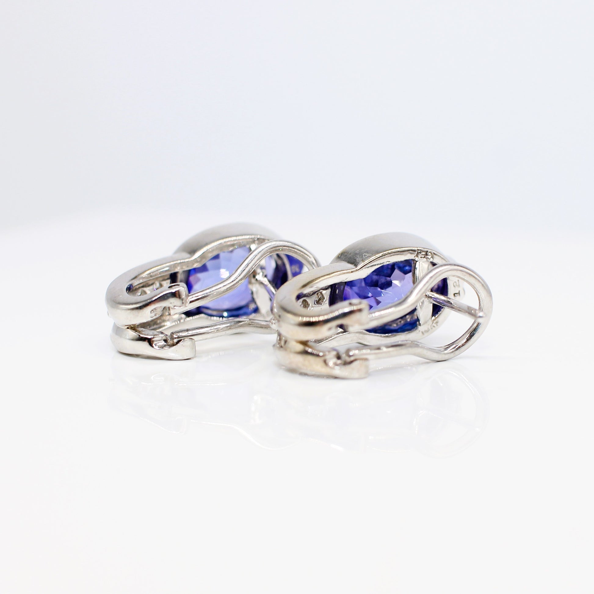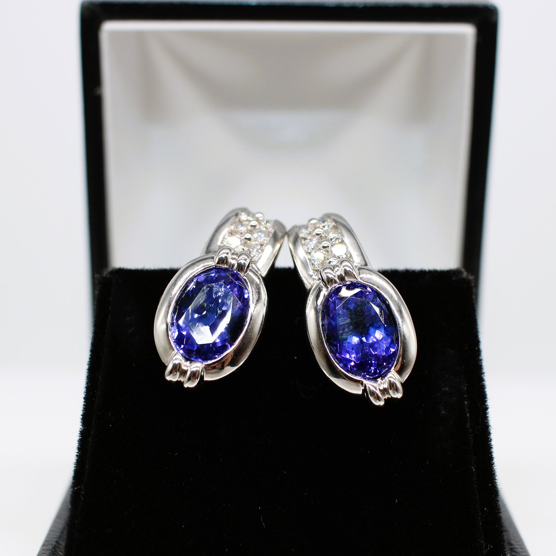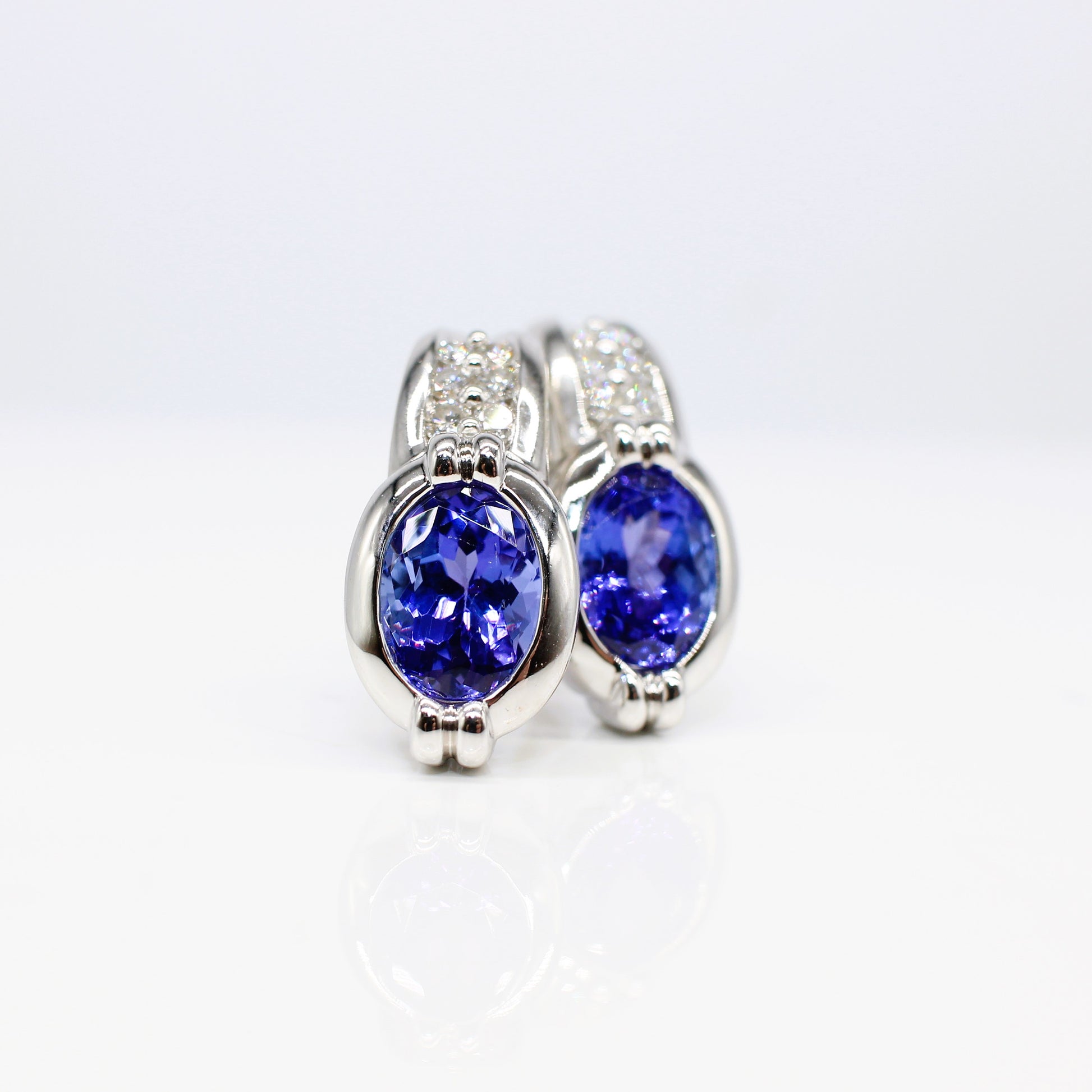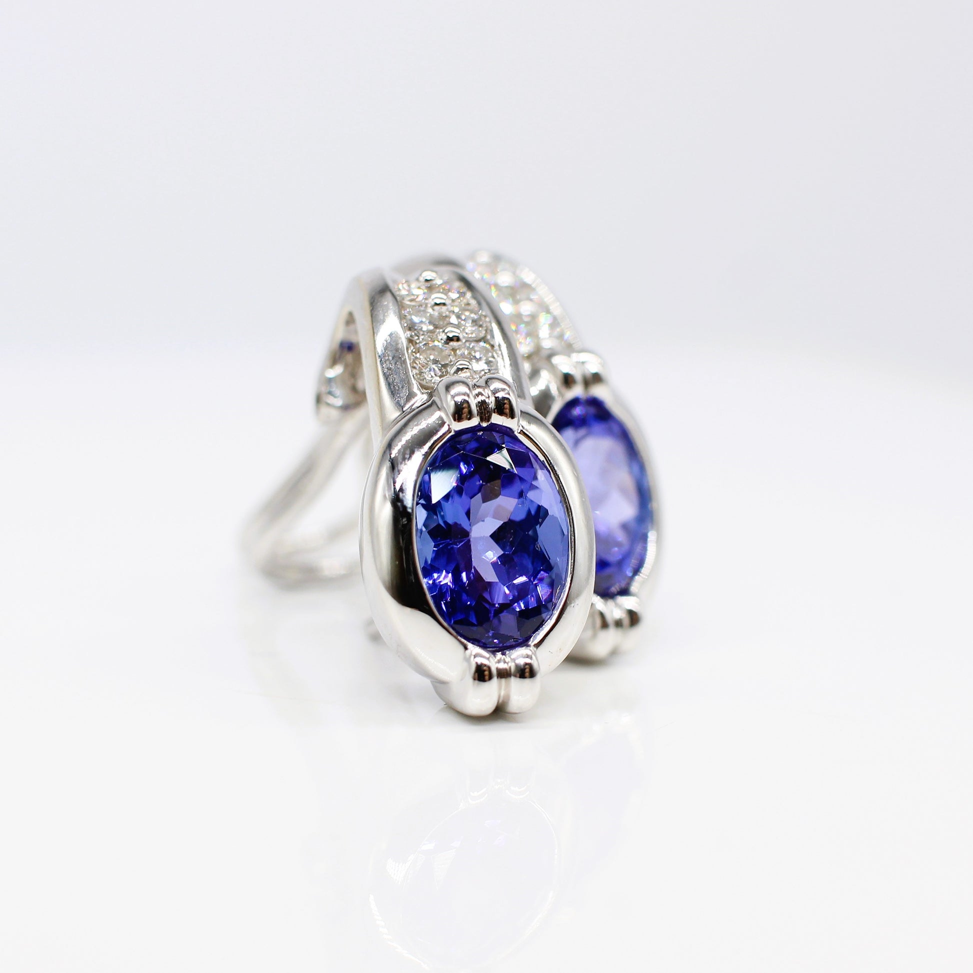 A Unique Pair Of Tanzanite And Diamond Earrings In 18K White Gold. Sourced by Flawless Enigma.
