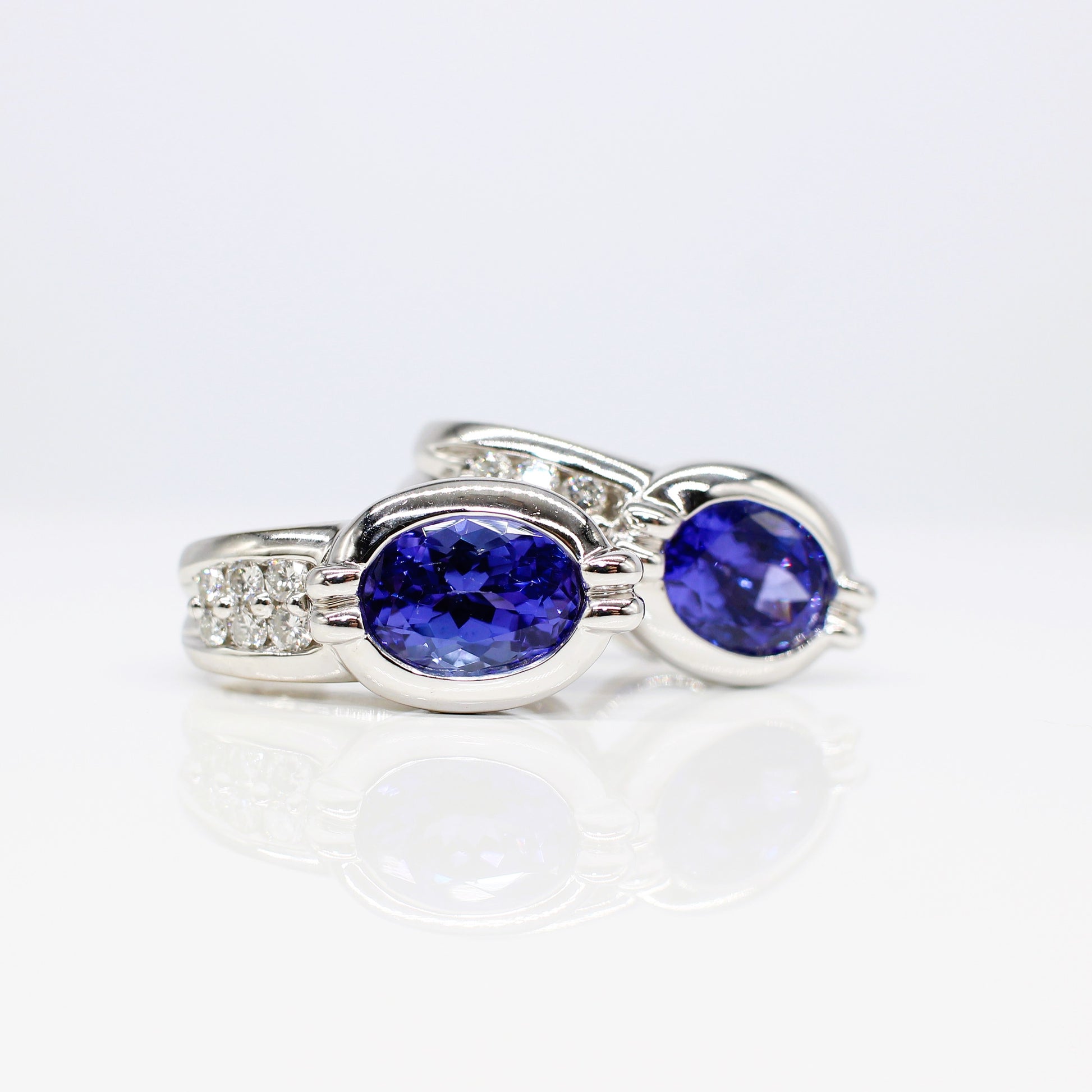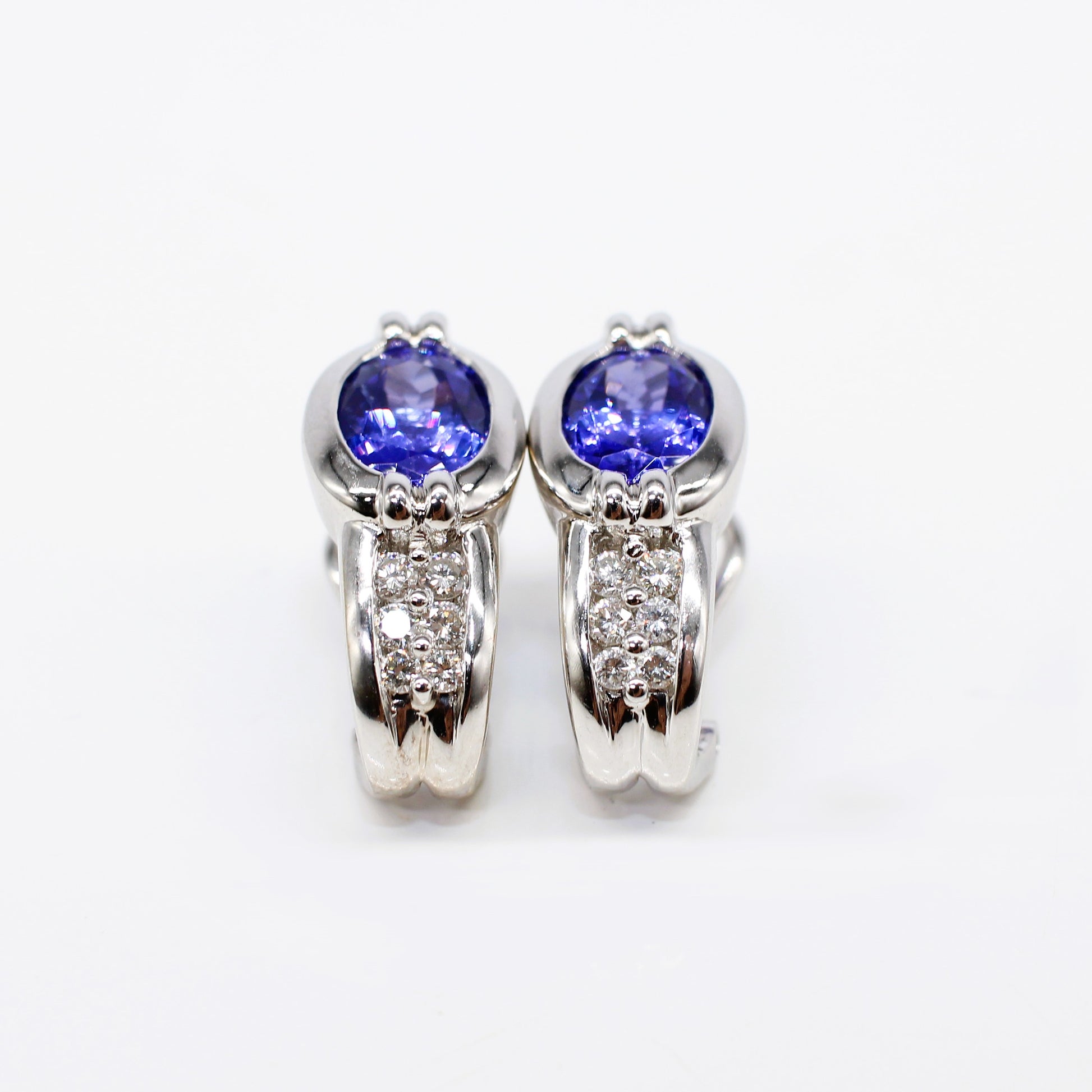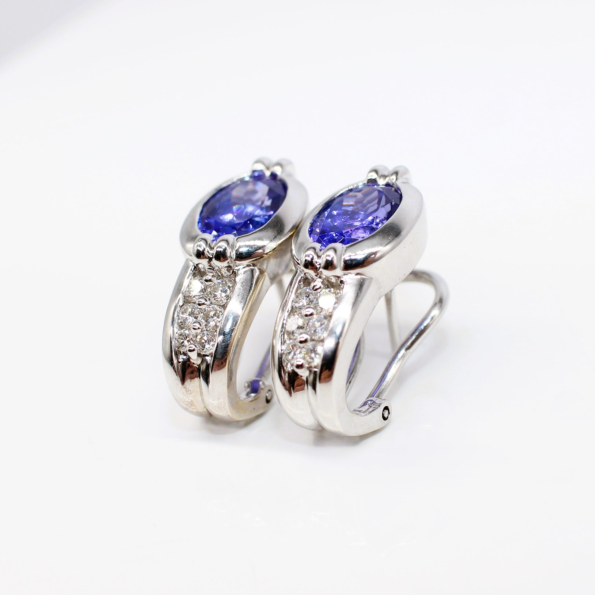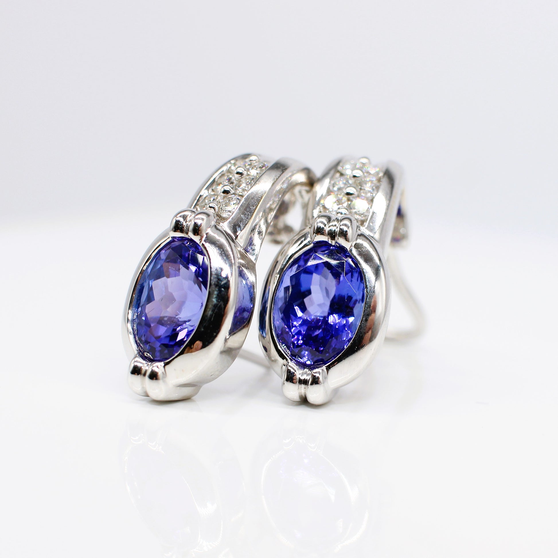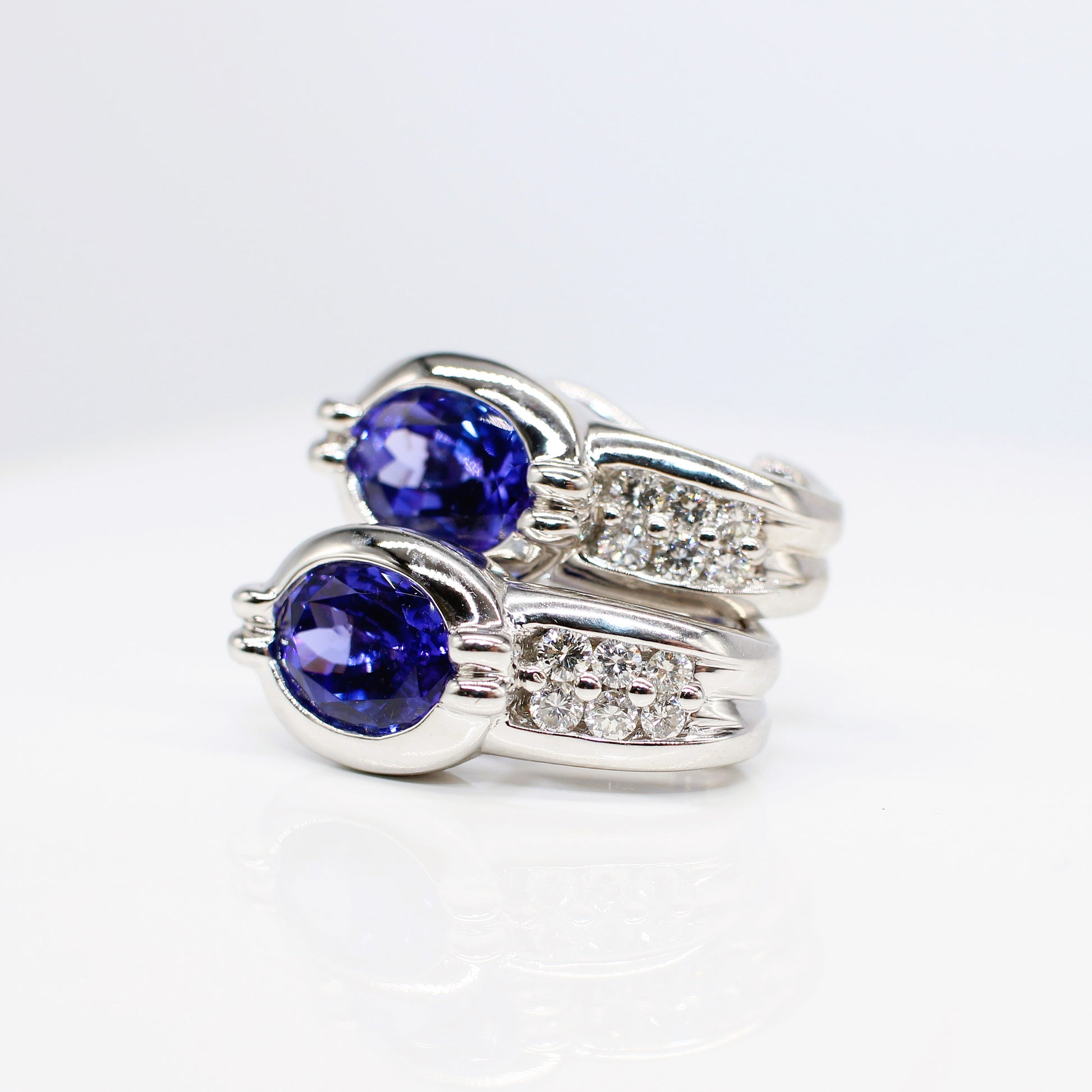 A Unique Pair Of Tanzanite And Diamond Earrings In 18K White Gold. Sourced by Flawless Enigma.
